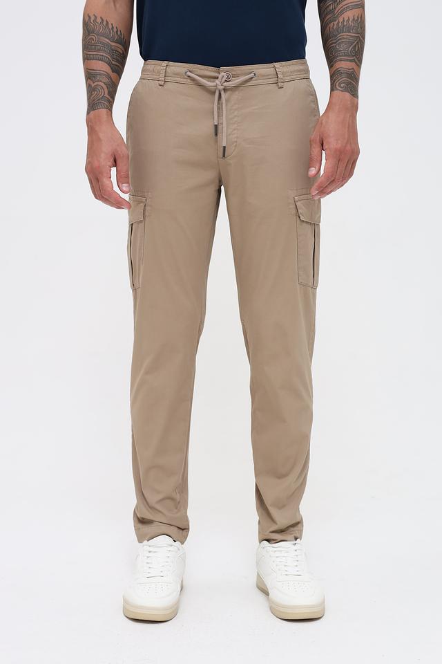 Брюки выполнены из высококачественного хлопка (97%) с добавлением эластана (3%), что обеспечивает приятные тактильные ощущения, хорошую воздухопроницаемость и небольшую эластичность. Прямой крой и удобный пояс с утяжкой гарантируют комфортную посадку по фигуре. На брюках предусмотрены вместительные накладные карманы на бедрах, которые добавляют практичности и подчеркивают стиль карго.
