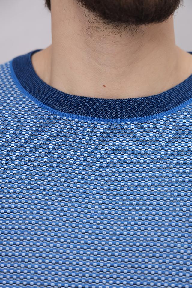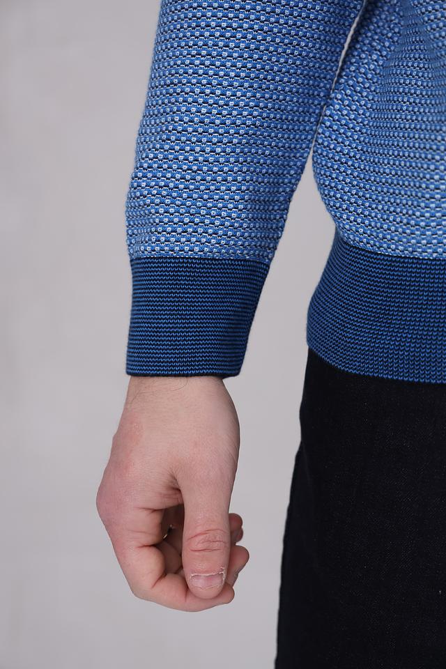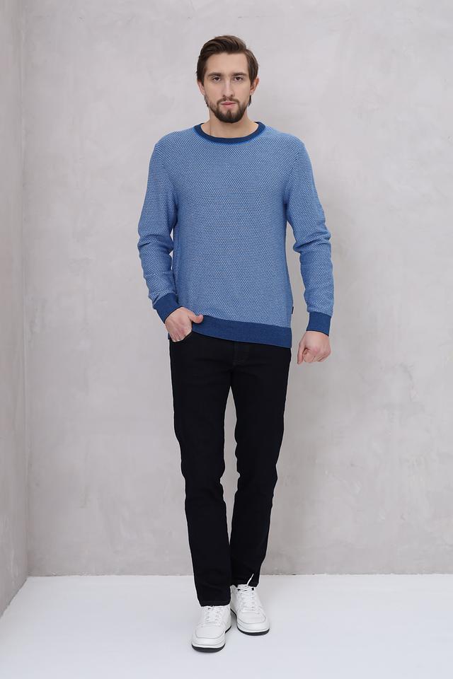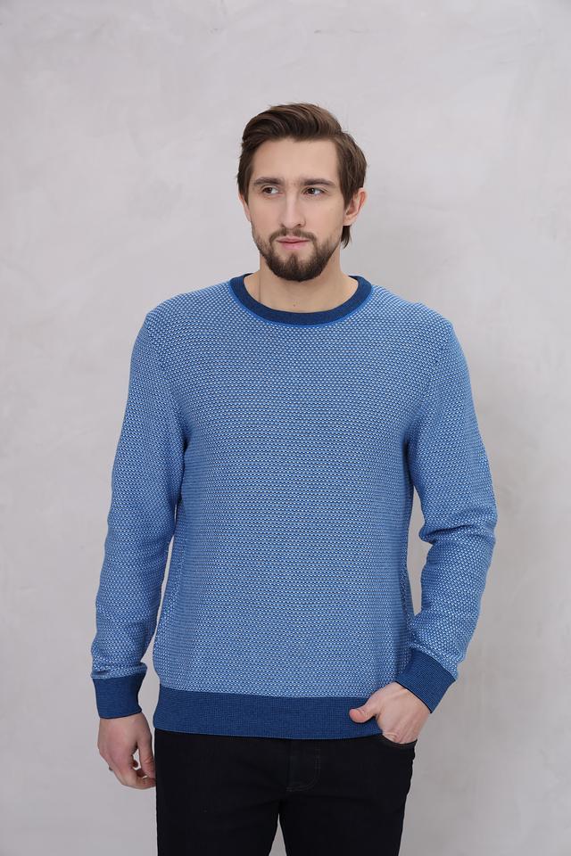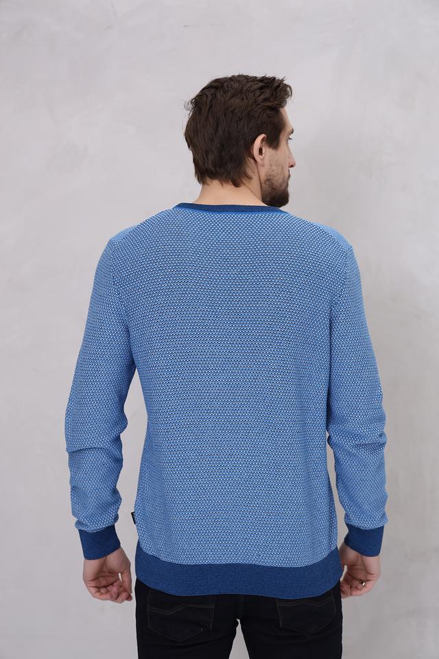 Мужской джемпер Bugatti голубого цвета с оригинальным узором и круглым вырезом горловины. Изготовлен из 100% хлопка, обеспечивающего комфорт и воздухопроницаемость. Стильное и практичное решение для повседневного гардероба. Состав: хлопок 100%