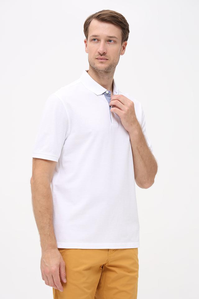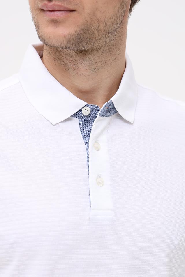 Белое поло от Bugatti выполнено из текстурированного хлопка. Классический крой и воротник с контрастной синей отделкой придают модели стильный вид. Идеальный выбор для создания повседневных образов. Состав: хлопок 100%