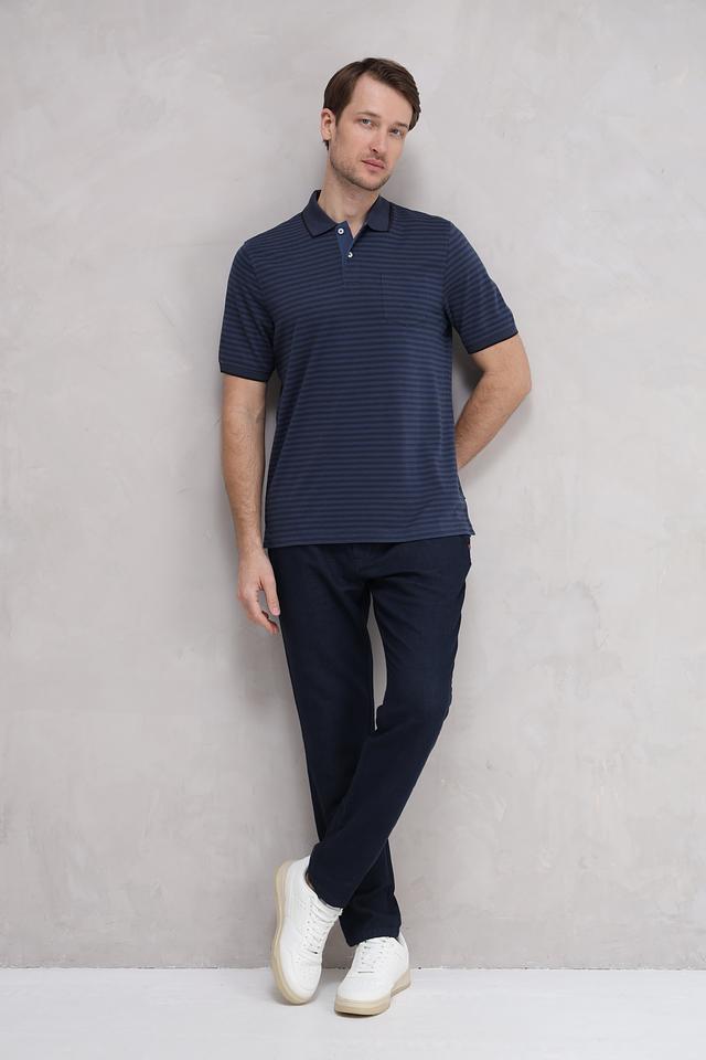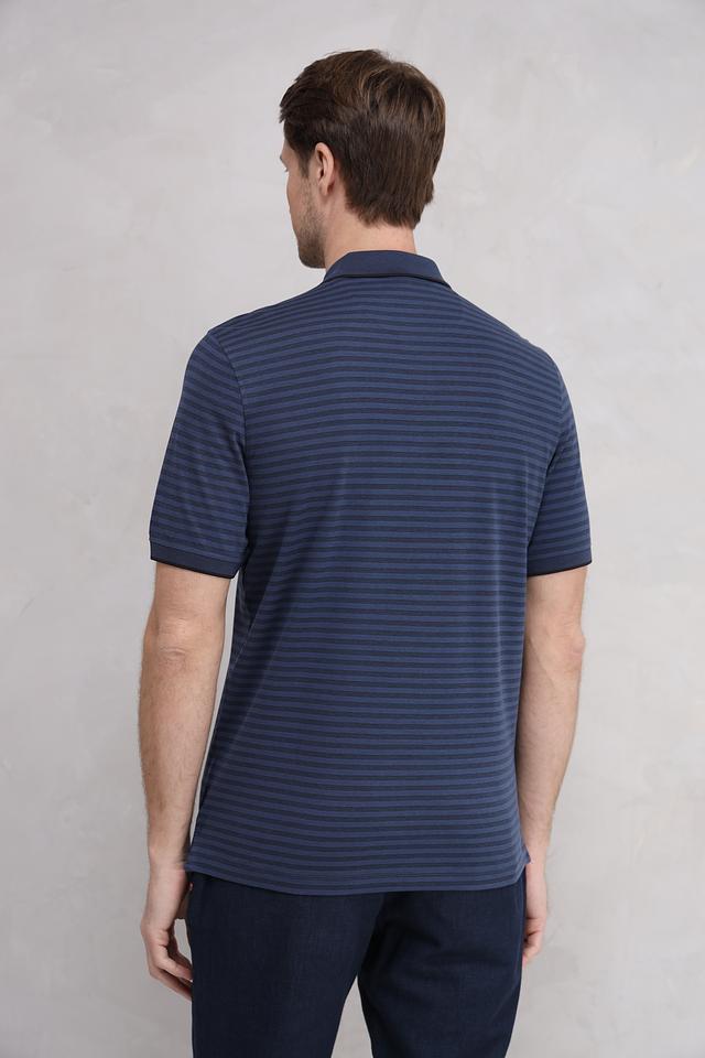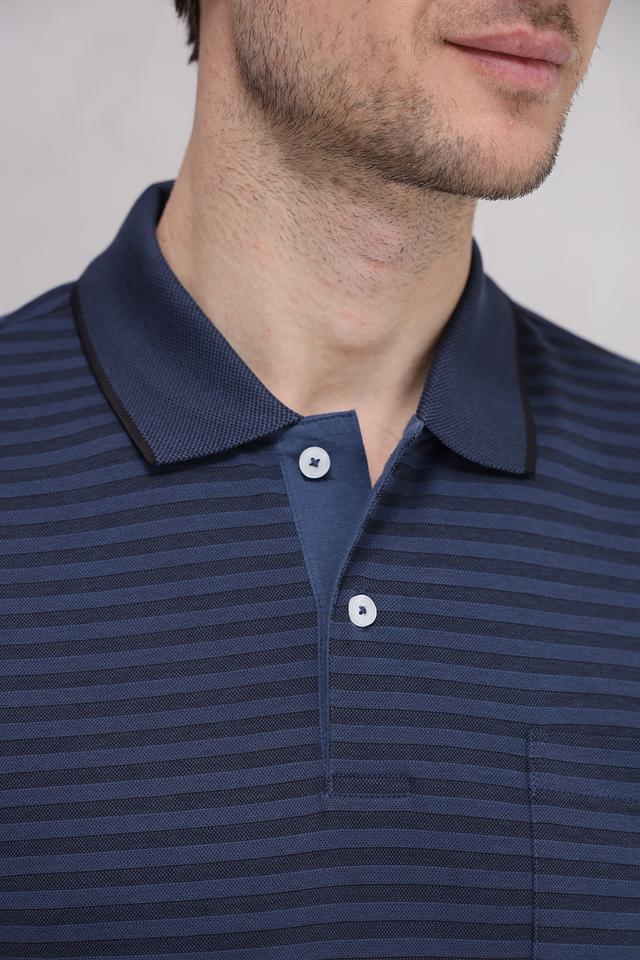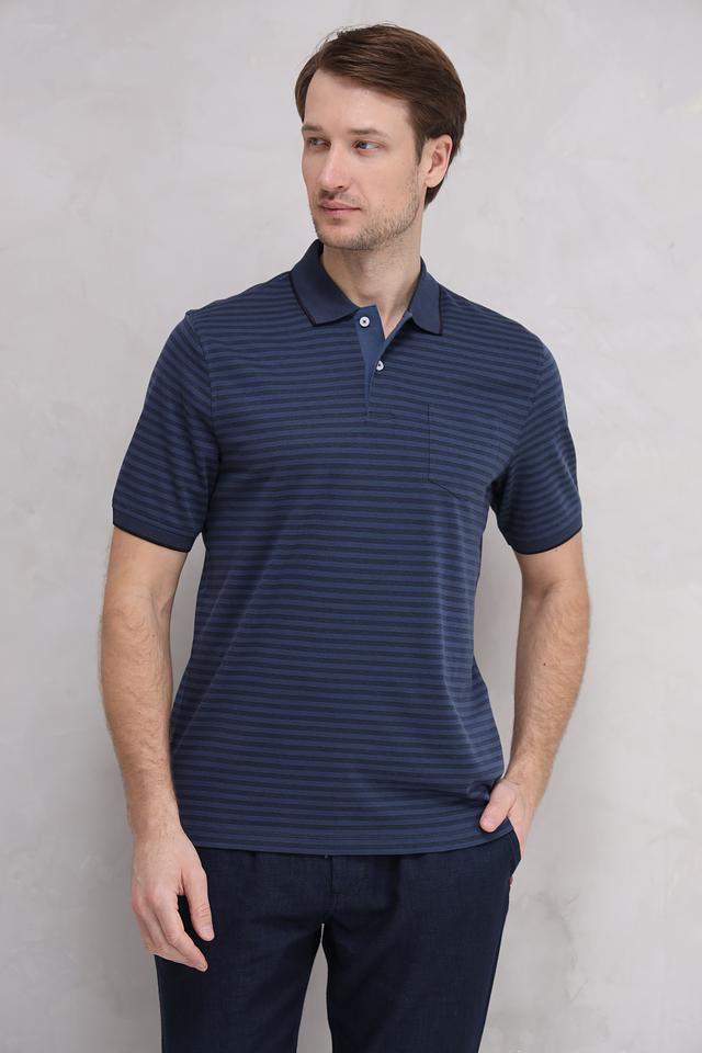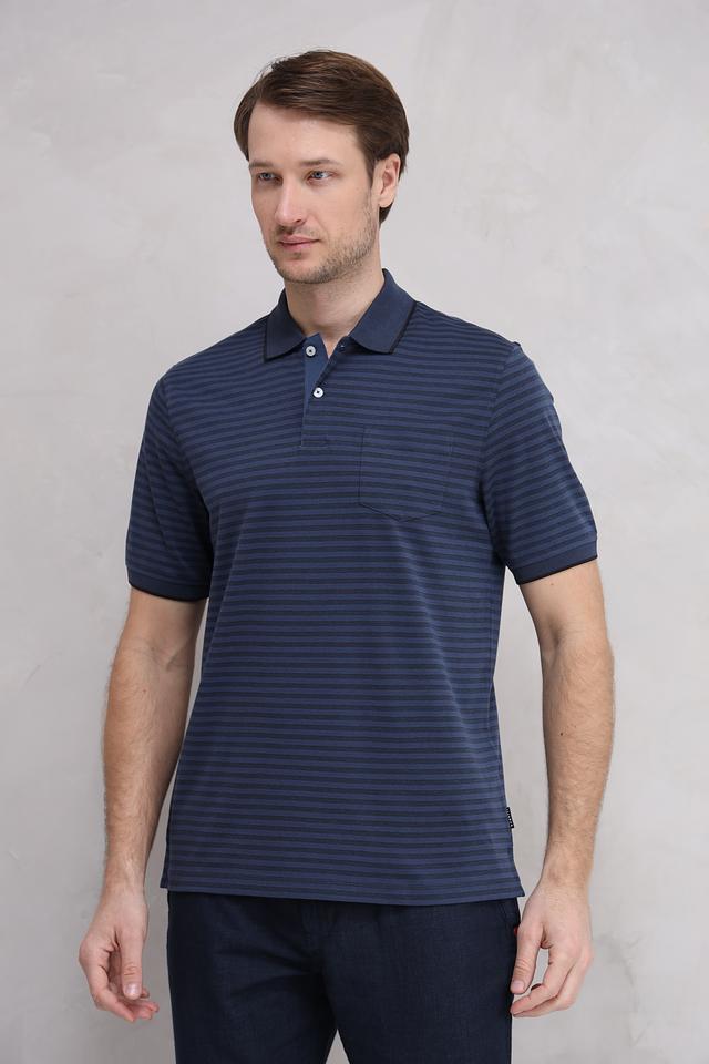 Мужское поло Bugatti синего цвета с классическим дизайном в полоску. Изготовлено из сочетания хлопка и полиэстера, обеспечивающего комфорт и практичность. Состав: полиэстер 50%, хлопок 50%