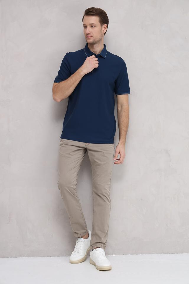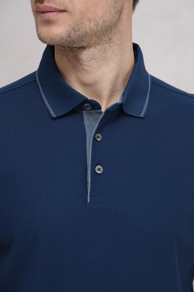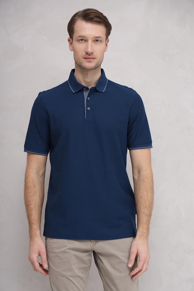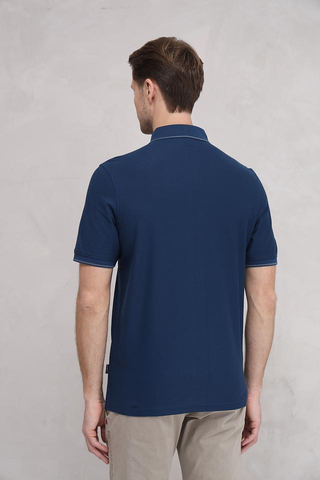 Мужское поло Bugatti темно-синего цвета с контрастной отделкой на воротнике и рукавах. Изготовлено из 100% хлопка, обеспечивающего комфорт и воздухопроницаемость. Стильный и универсальный вариант для повседневного гардероба. Состав: хлопок 100%