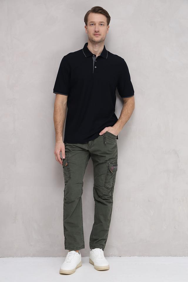 Чёрное поло от Bugatti – это стильная и комфортная модель с коротким рукавом и классическим воротником. Отличительной особенностью является серая отделка по краю воротника и рукавов, придающая изделию современный вид. Поло выполнено из 100% хлопка. Состав: хлопок 100%