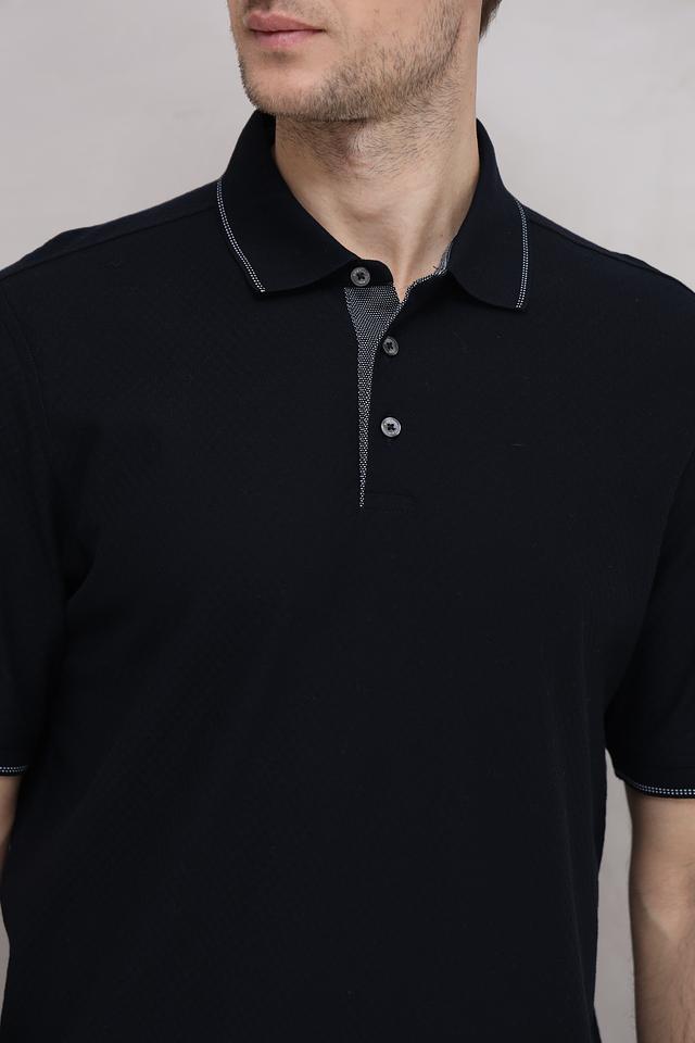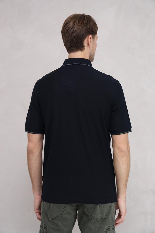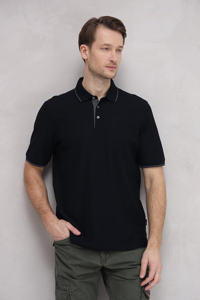 Данная модель выполнена в насыщенном чёрном цвете, который легко сочетается с различными элементами гардероба. Серый кант по краю воротника и рукавов добавляет поло изысканности и оригинальности.