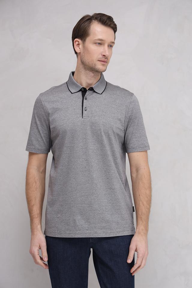 Стильное поло Bugatti серого цвета с чёрной отделкой воротника и планки. Изготовлено из 100% хлопка, обеспечивающего комфорт и воздухопроницаемость. Классический крой и лаконичный дизайн делают эту модель универсальным дополнением к вашему гардеробу. Состав: хлопок 100%