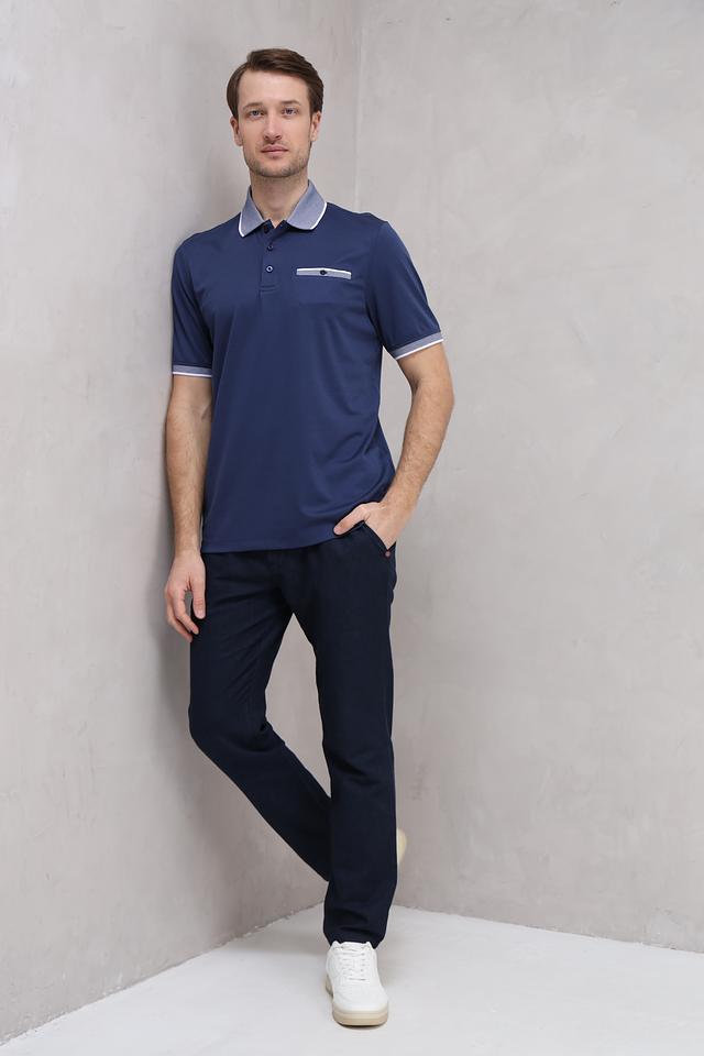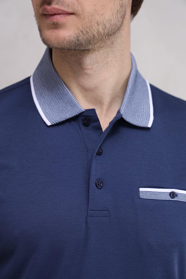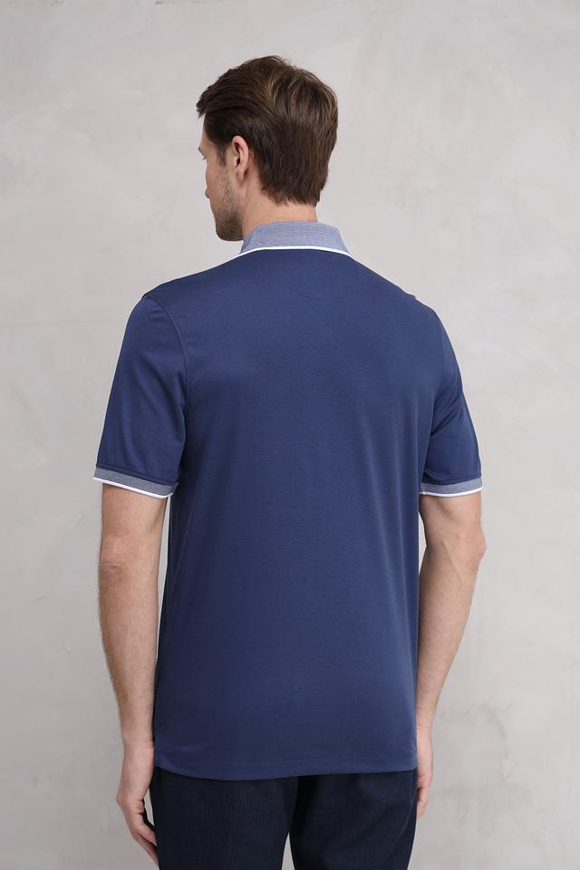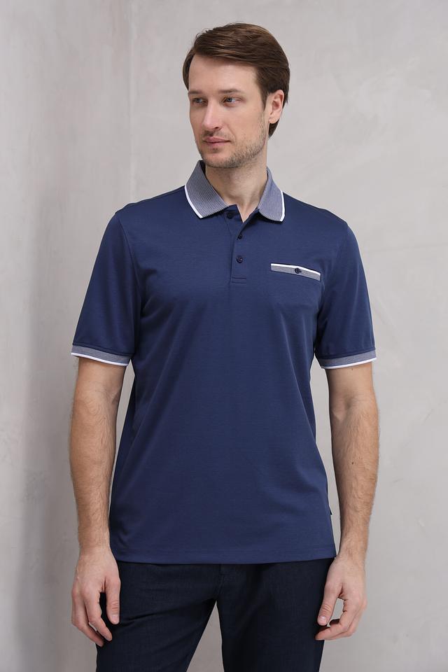 Мужское поло от Bugatti выполнено в насыщенном синем цвете с аккуратными серыми деталями. Эта модель сочетает в себе элегантность и удобство, идеально подходя для повседневной носки.