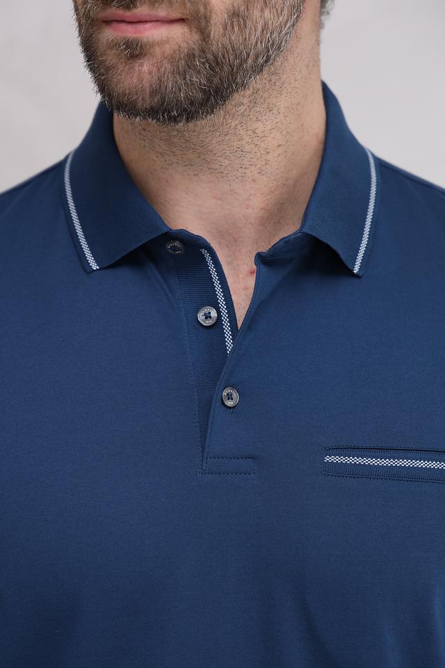Мужское поло Bugatti синего цвета с контрастной белой отделкой на воротнике и рукавах. Классический крой и 100% хлопковый состав обеспечивают комфорт и удобство в носке. Состав: хлопок 100%