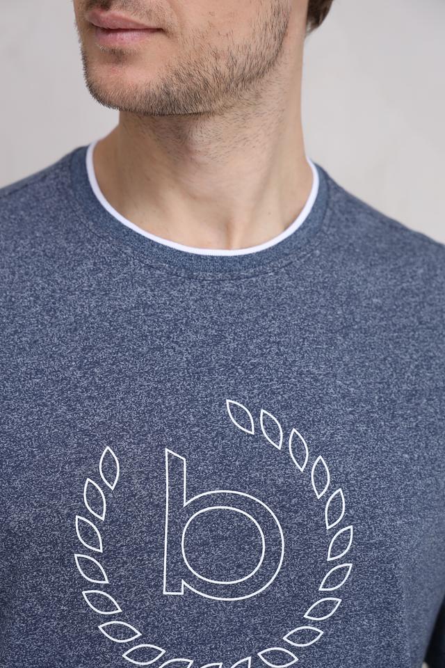 Основным акцентом является стильный логотип бренда, выполненный в белом цвете и расположенный по центру груди. Логотип представляет собой букву "b" в круге, что придает футболке узнаваемый и современный вид.