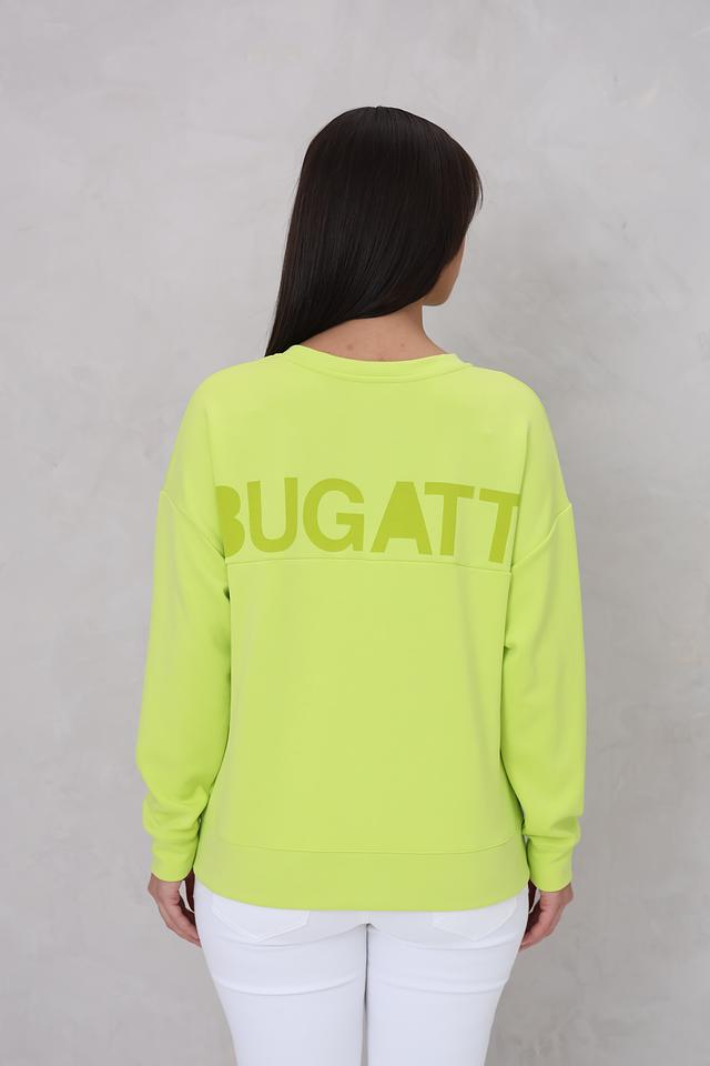 Женский пуловер Bugatti лаймового цвета – это стильная и удобная модель с круглым вырезом и логотипом бренда на спине. Изготовлен из мягкого и приятного к телу модала с добавлением полиэстера и эластана. Состав: модал 65%, полиэстер 30%, эластан 5%
