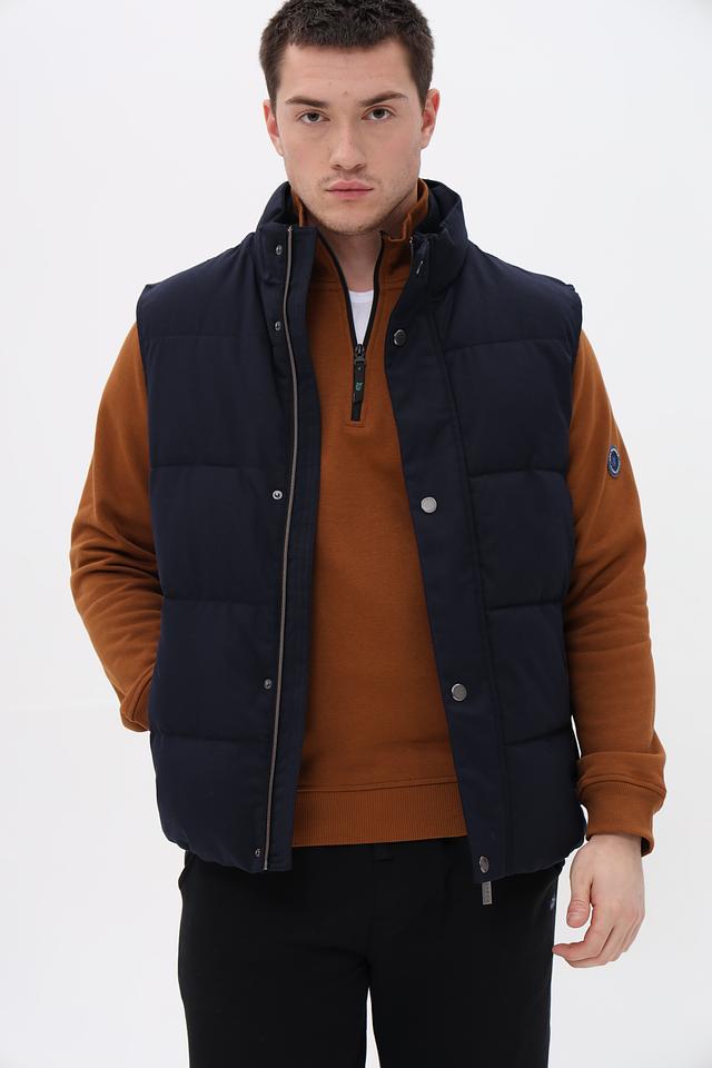 Стильный мужской жилет Bugatti синего цвета с актуальной стеганой фактурой. Модель выполнена из полиэстера с добавлением вискозы и эластана, что обеспечивает комфорт и удобство в носке. Отличный выбор для создания многослойных образов. Состав: полиэстер 69%, вискоза 29%, эластан 2%