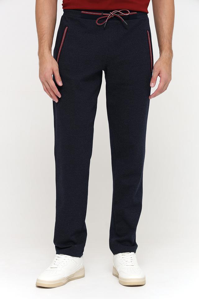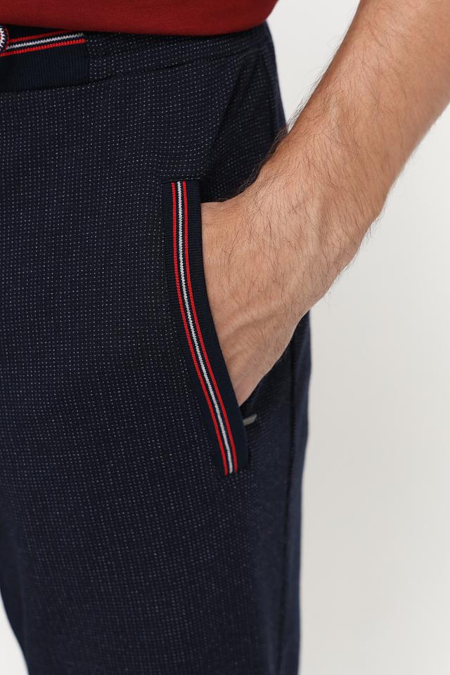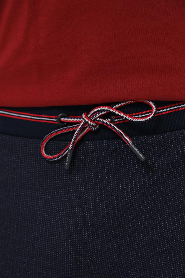 Мужские спортивные брюки Bugatti темно-синего цвета с удобным поясом на шнуровке и контрастными красными полосами. Идеальный выбор для активного образа жизни и повседневной носки. Состав: хлопок 47%, полиэстер 47%, эластан 6%
