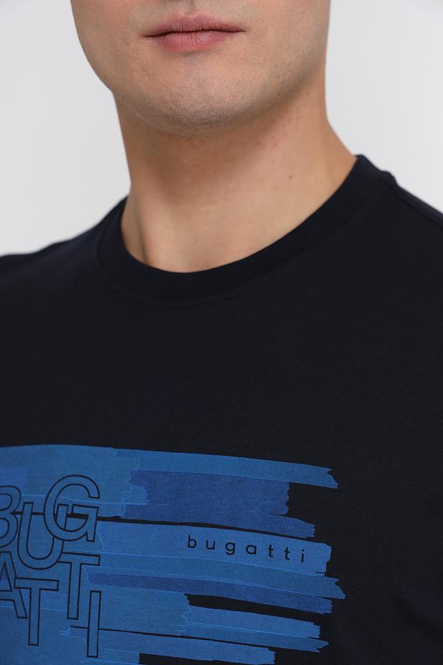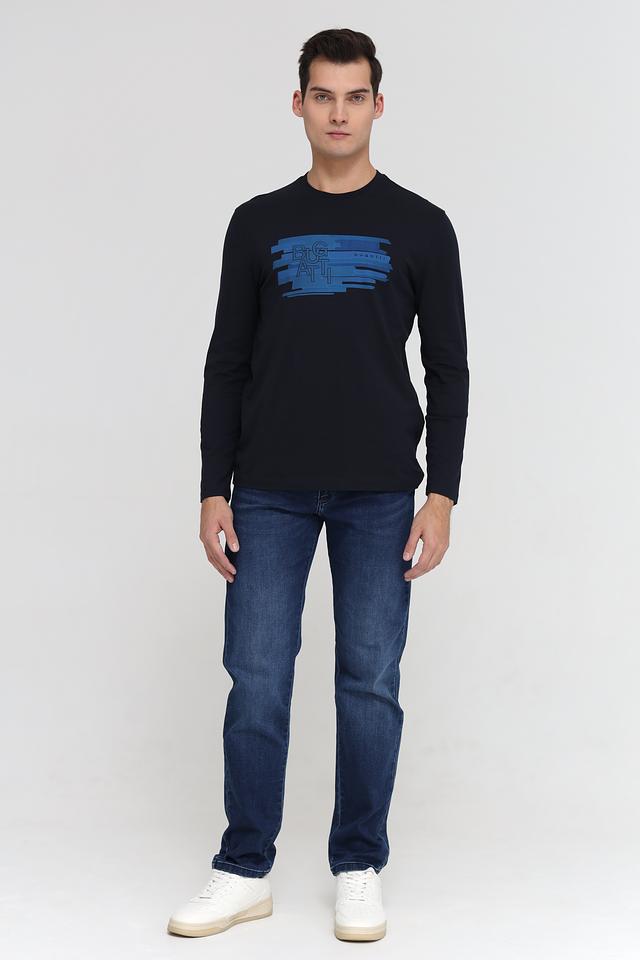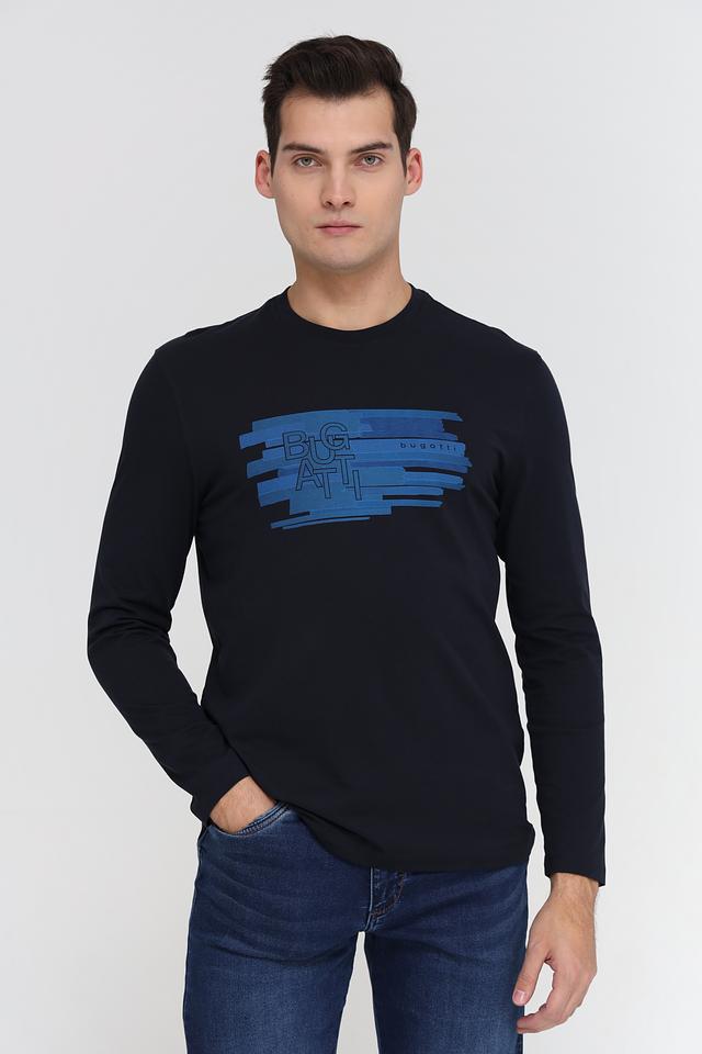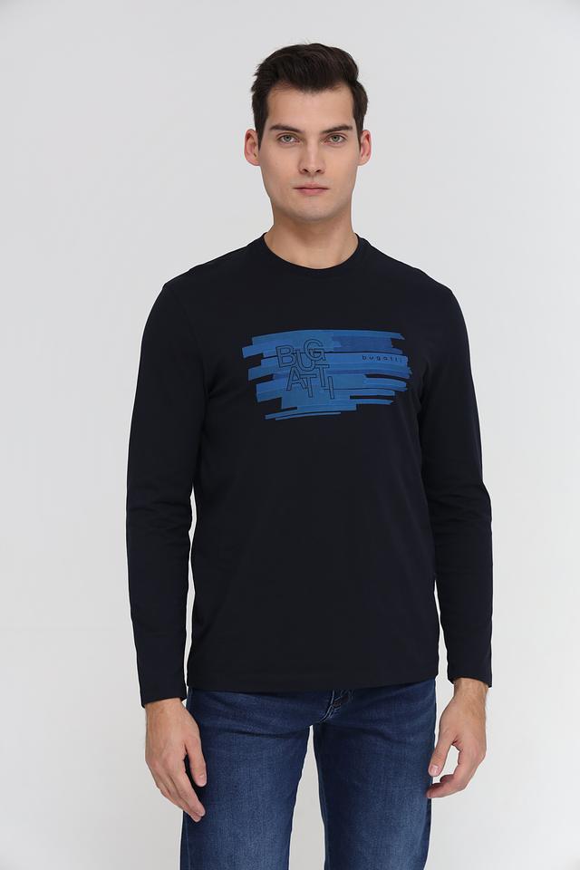 Мужской лонгслив Bugatti черного цвета с оригинальным синим принтом логотипа. Изготовлен из 100% хлопка, обеспечивающего комфорт и удобство в носке. Стильный и практичный выбор для повседневного гардероба. Состав: хлопок 100%