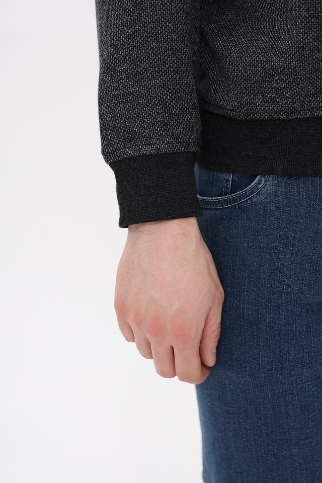 Мужской джемпер от Bugatti выполнен в сером цвете с текстурированным узором. Модель имеет воротник-стойку и короткую молнию, что придает ей современный и стильный вид.