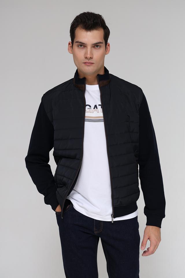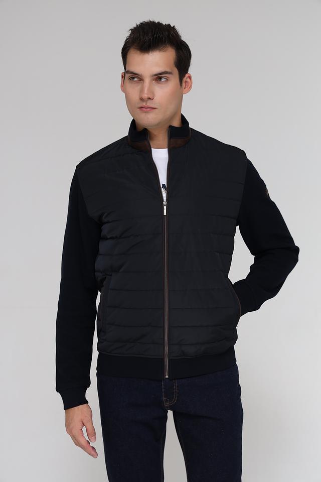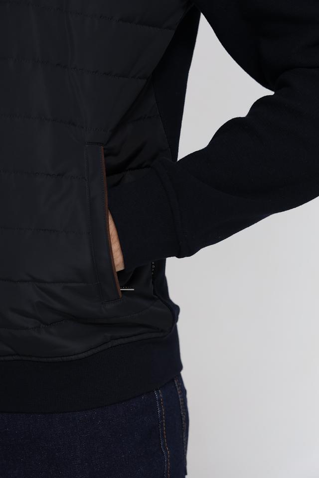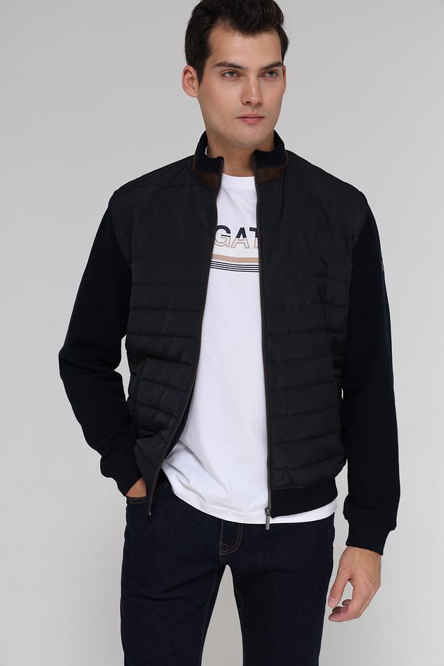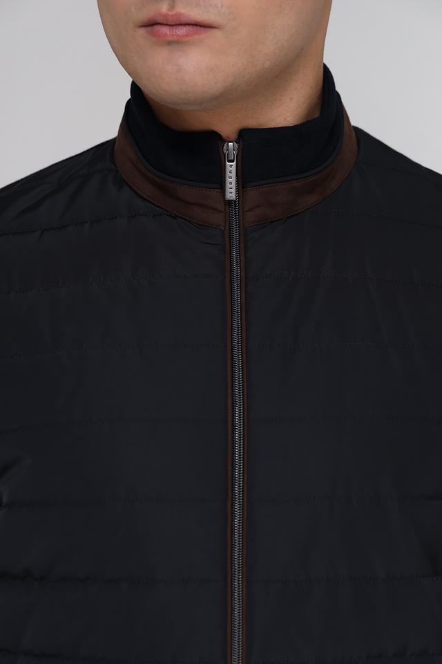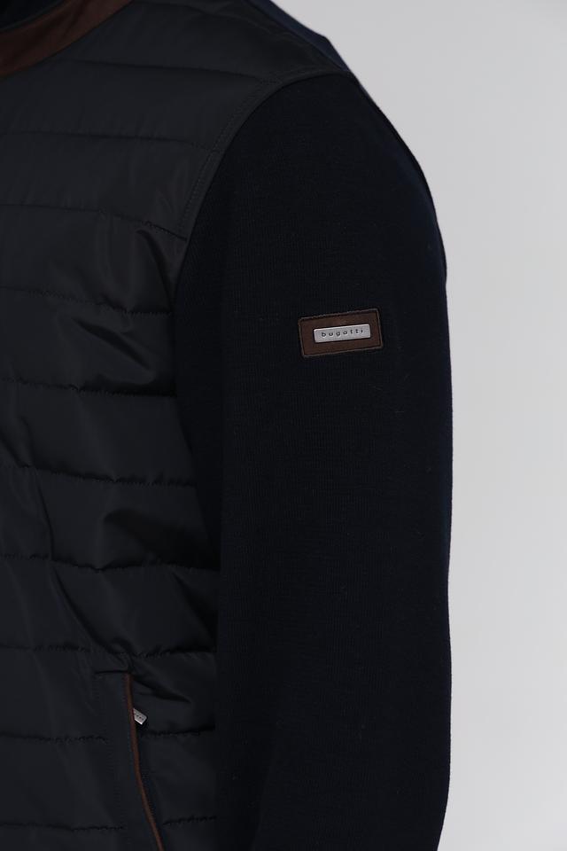 Мужской кардиган от Bugatti – это сочетание комфорта и современного дизайна. Модель выполнена в черном цвете и отличается комбинированной текстурой: гладкая вязка и стеганая планка. Застежка – молния, воротник – стойка.