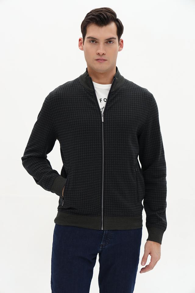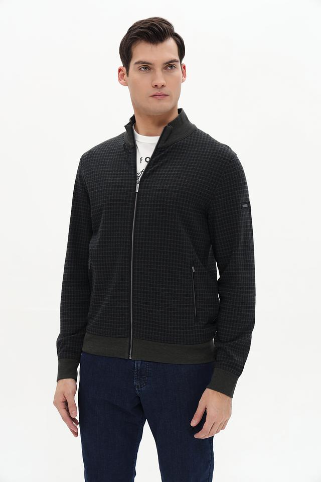 Мужской кардиган Bugatti оливкового цвета с геометрическим рисунком. Изготовлен из хлопка с добавлением полиэстера и эластана для комфорта и износостойкости. Состав: хлопок 52%, полиэстер 46%, эластан 2%