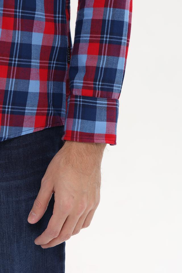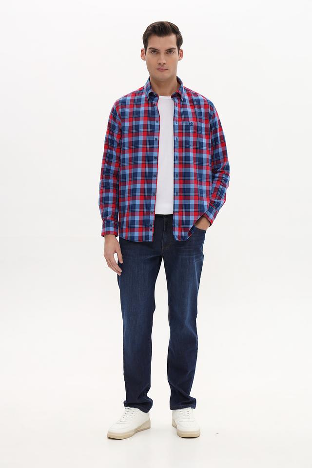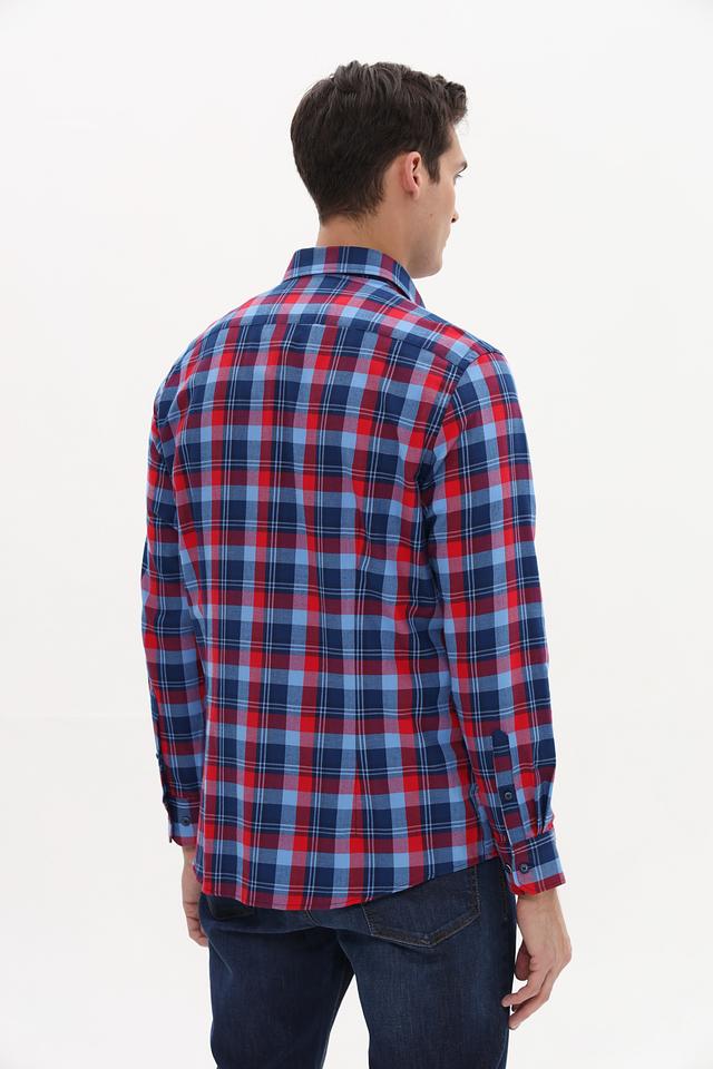 Основной цвет рубашки – сочетание красного и синего, оформленное в клетку. Это придает ей динамичный и современный вид. Рубашка изготовлена из 100% хлопка, что обеспечивает приятные тактильные ощущения и хорошую воздухопроницаемость.