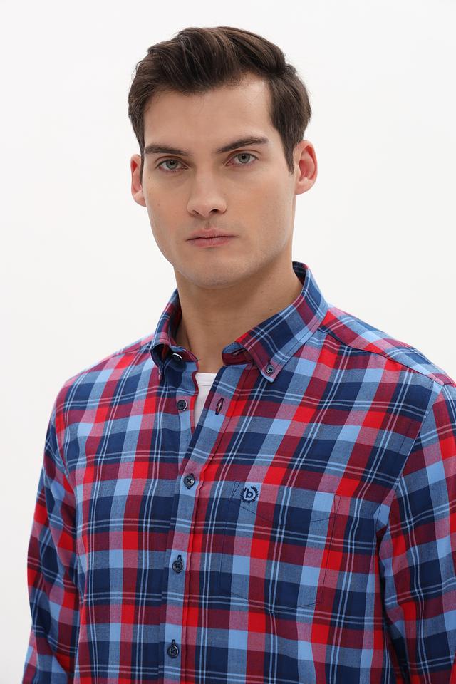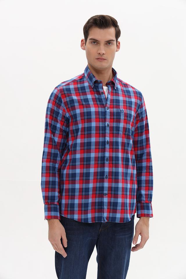 Мужская рубашка Bugatti красного и синего цвета в классическую клетку. Изготовлена из 100% хлопка, обеспечивающего комфорт и воздухопроницаемость. Отличный выбор для создания стильного повседневного образа. Состав: хлопок 100%