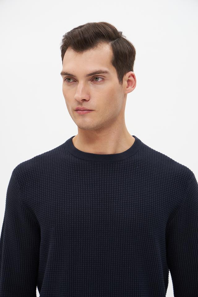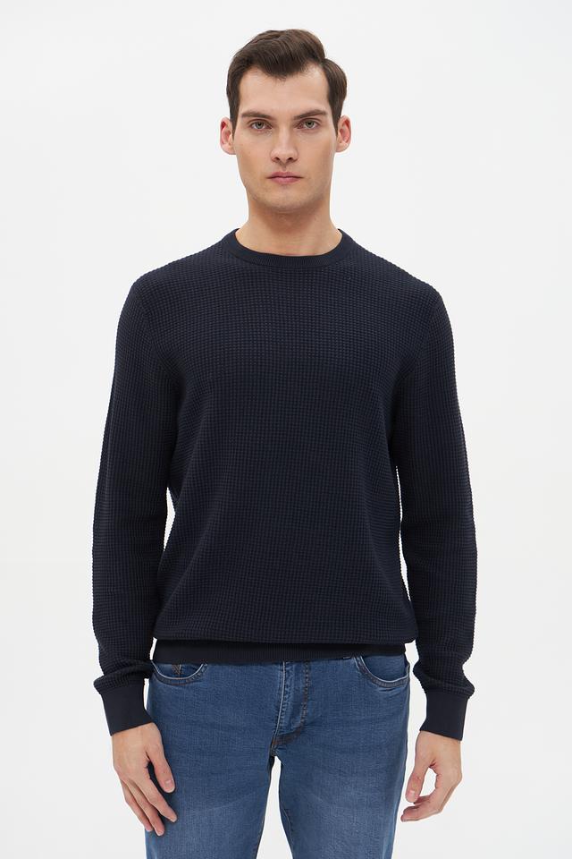 Мужской джемпер Bugatti тёмно-синего цвета выполнен из 100% хлопка и имеет текстурную вязку. Классический крой и круглый вырез горловины делают этот джемпер универсальным элементом гардероба. Состав: хлопок 100%