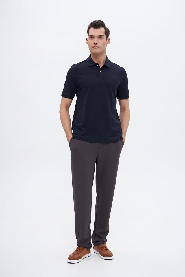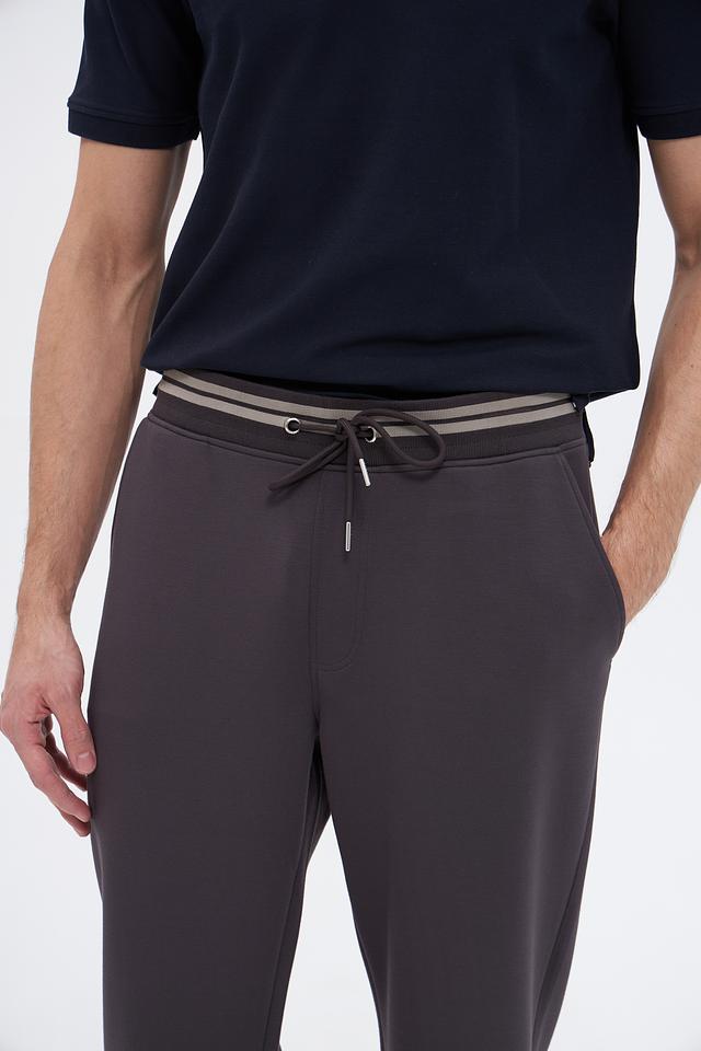 Брюки имеют удобный эластичный пояс с регулируемым шнурком, обеспечивающим надежную посадку. Классический крой и лаконичный дизайн делают эти брюки универсальными и легко сочетаемыми с различной одеждой.