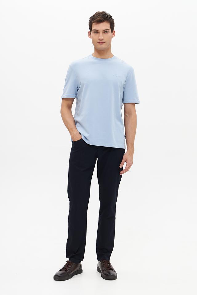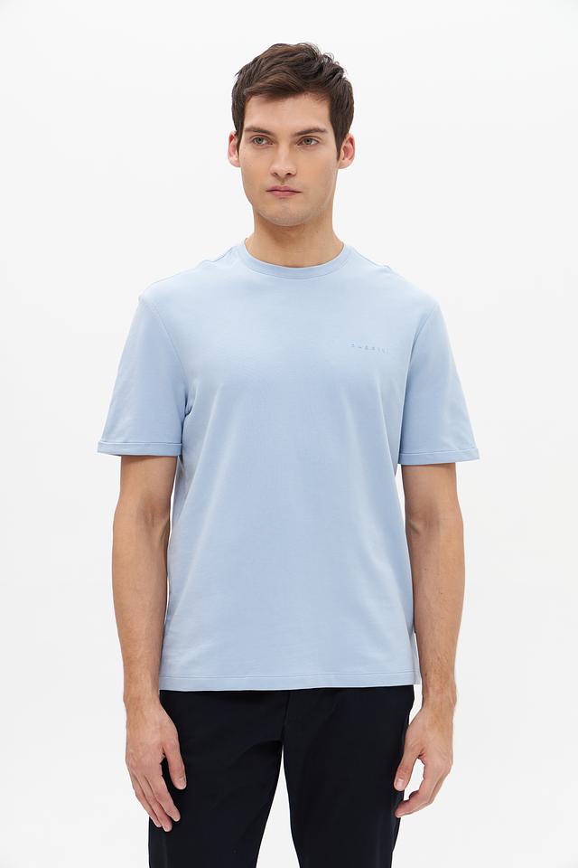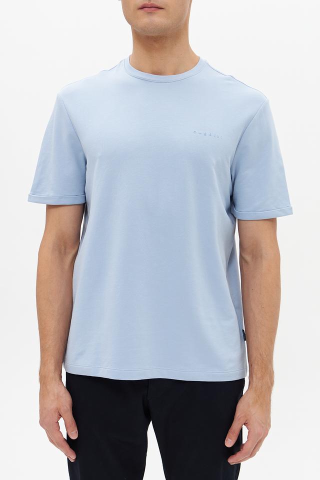 Футболка имеет классический прямой крой, который подходит для любого типа фигуры. Короткие рукава и круглый вырез горловины делают ее универсальной для различных стилей и образов. Небольшая вышивка с логотипом бренда на груди добавляет изысканности.