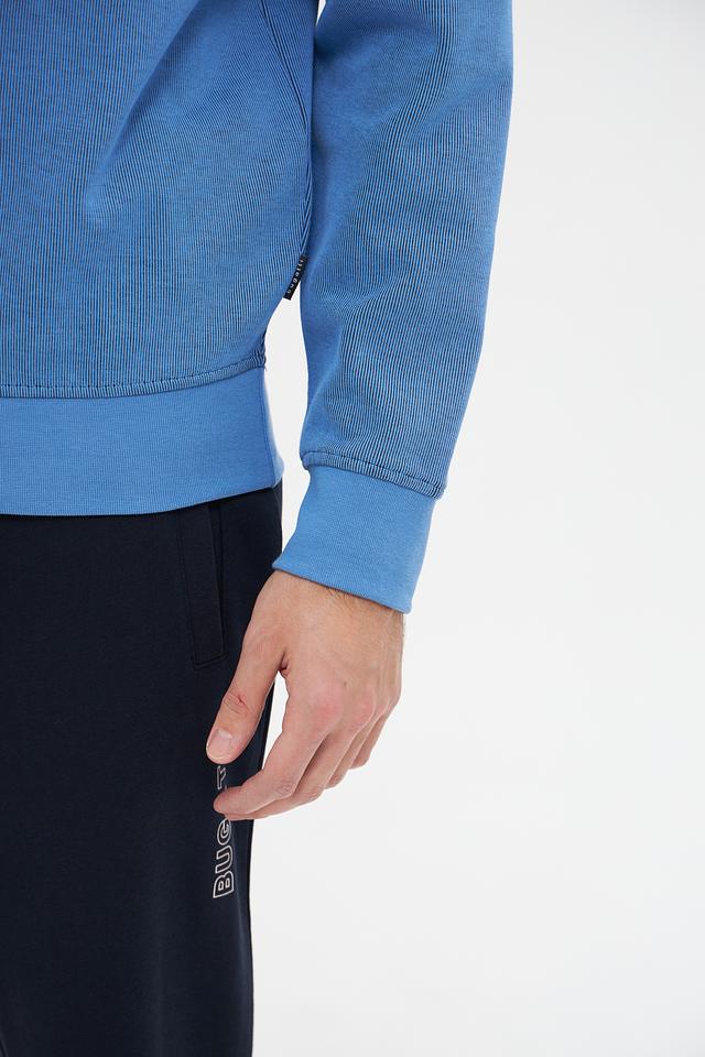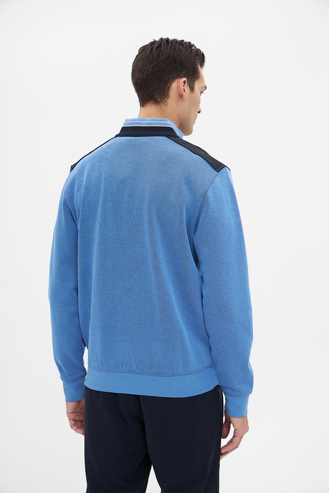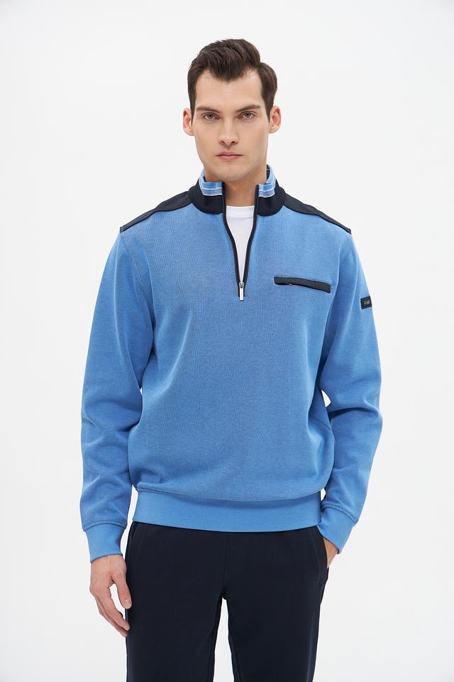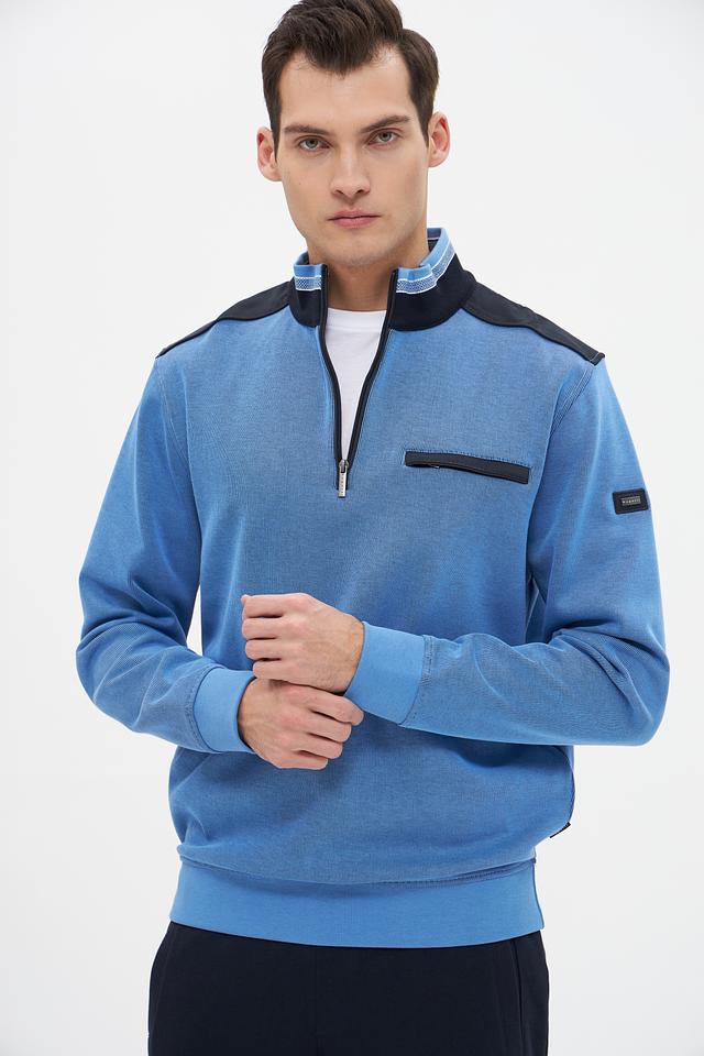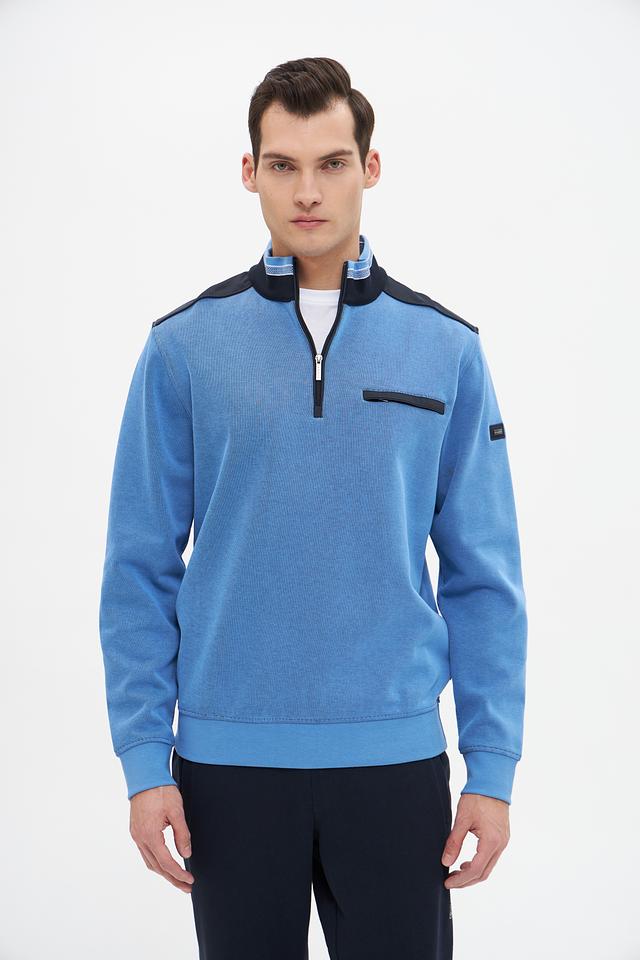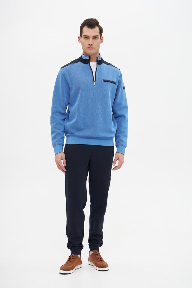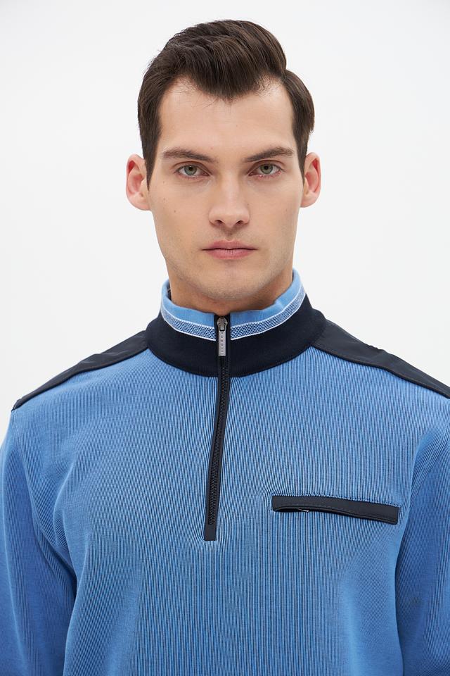 Голубой джемпер Bugatti с короткой молнией и контрастной отделкой. Изготовлен из мягкого хлопка с добавлением полиэстера для комфорта и долговечности. Стильный и удобный выбор для повседневного гардероба. Состав: хлопок 90%, полиэстер 10%