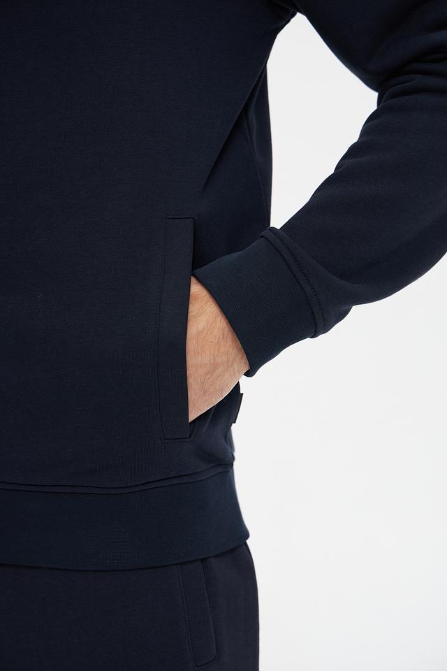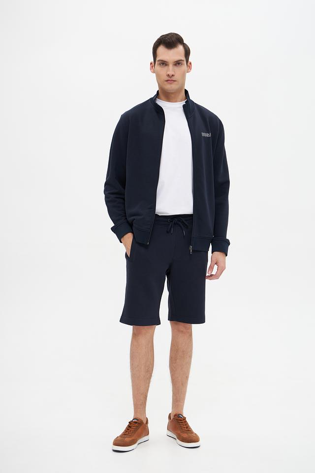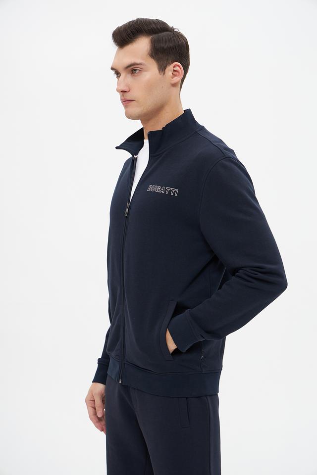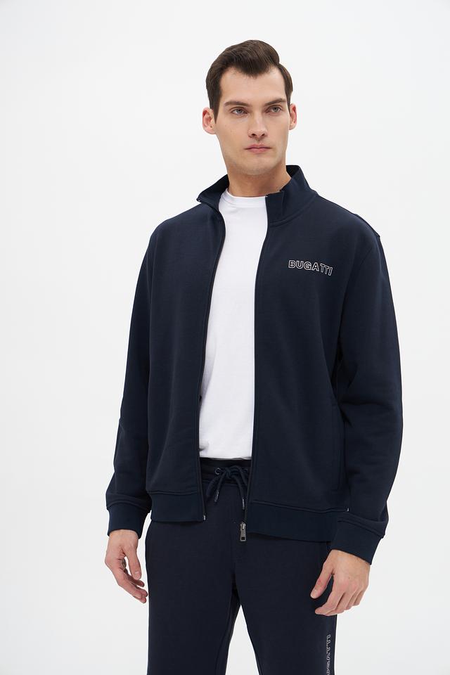 Кардиган имеет удобную застёжку-молнию, воротник-стойку и эластичные манжеты. Сочетание хлопка и полиэстера в составе обеспечивает комфорт, мягкость и долговечность изделия. На груди расположен логотип бренда Bugatti.