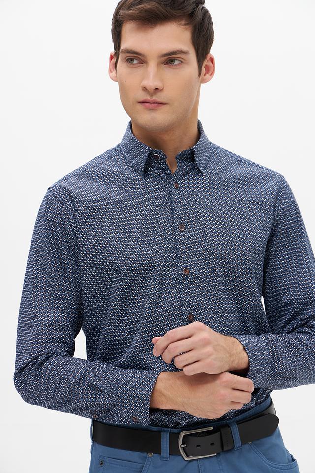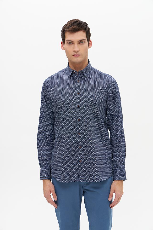 Мужская рубашка Bugatti синего цвета с оригинальным принтом – отличный выбор для создания стильного повседневного образа. Изготовлена из 100% хлопка, обеспечивающего комфорт и воздухопроницаемость. Состав: хлопок 100%