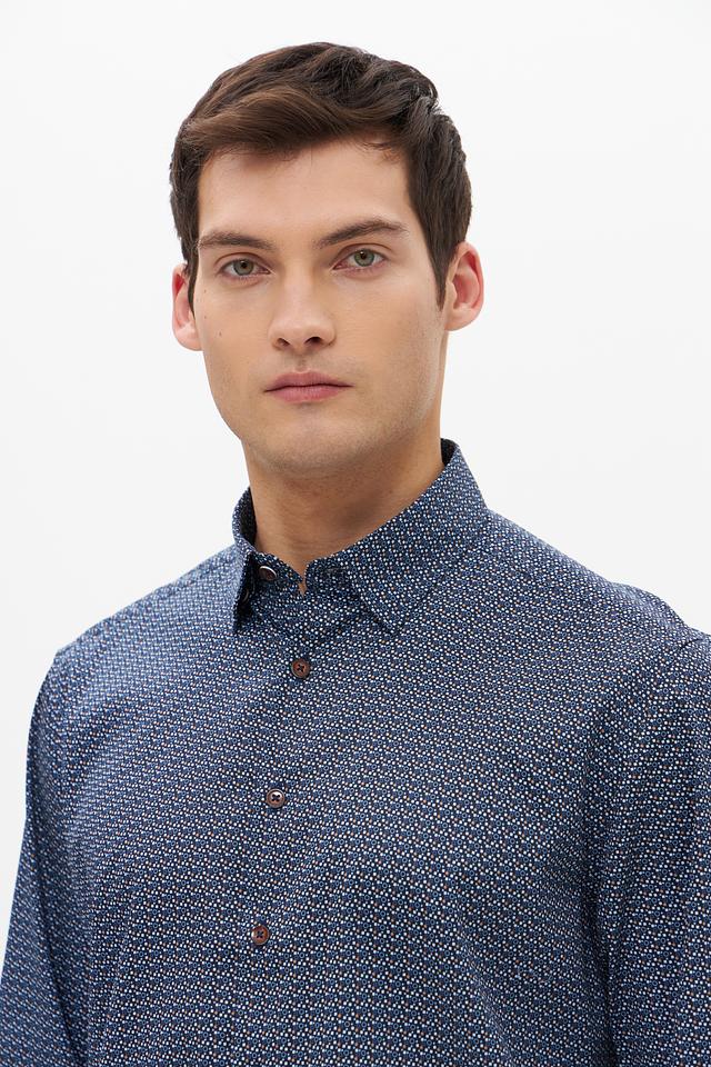 Эта рубашка от Bugatti станет незаменимой частью вашего гардероба. Выполнена в синем цвете с мелким геометрическим принтом, который придает ей изысканность и индивидуальность.