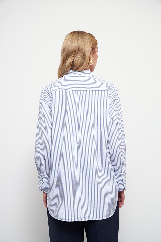 Женская рубашка Bugatti синего цвета в классическую полоску. Изготовлена из 100% хлопка, обеспечивающего комфорт и воздухопроницаемость. Отличный выбор для создания стильного повседневного образа. Состав: хлопок 100%