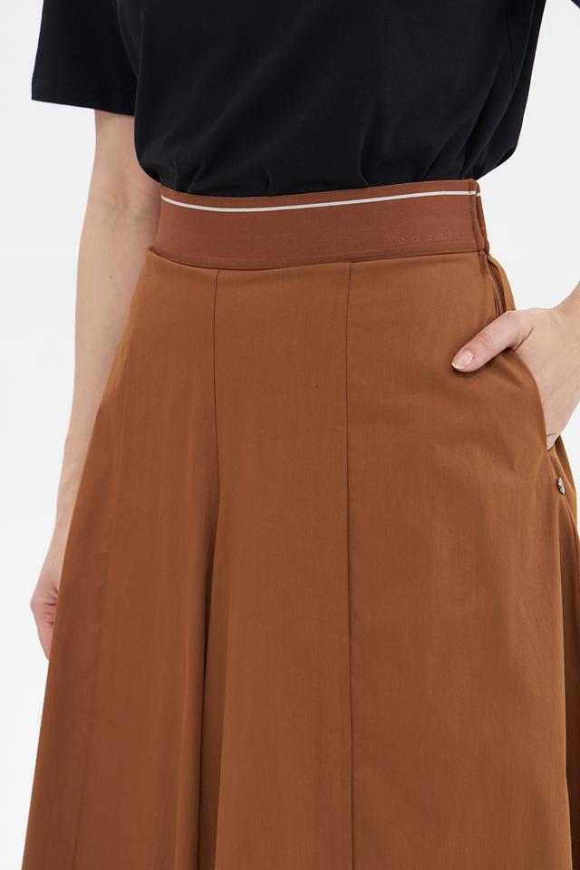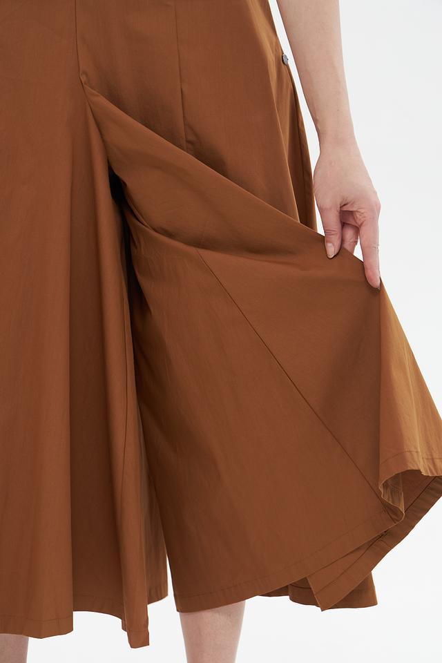 Брюки имеют свободный крой, который обеспечивает свободу движений и создает легкий, непринужденный образ. Высокая посадка подчеркивает талию и визуально удлиняет ноги. Широкие штанины кюлоты добавляют образу современности и оригинальности.