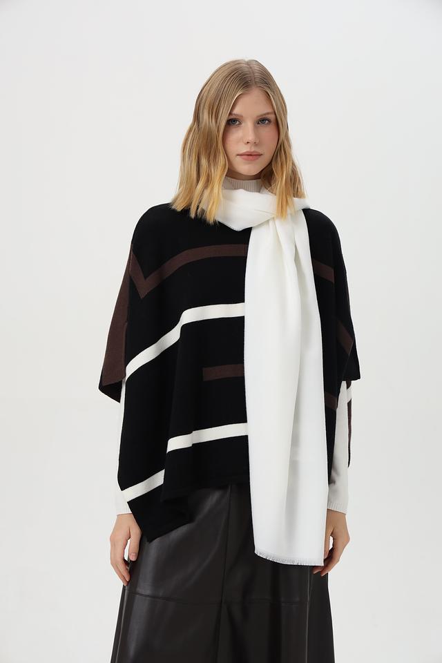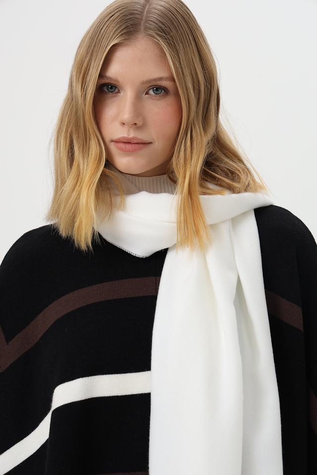 Шарф имеет прямоугольную форму и выполнен из высококачественной смеси шерсти (30%), полиамида (25%) и полиэстера (45%). Такое сочетание материалов обеспечивает мягкость, тепло и долговечность изделия.