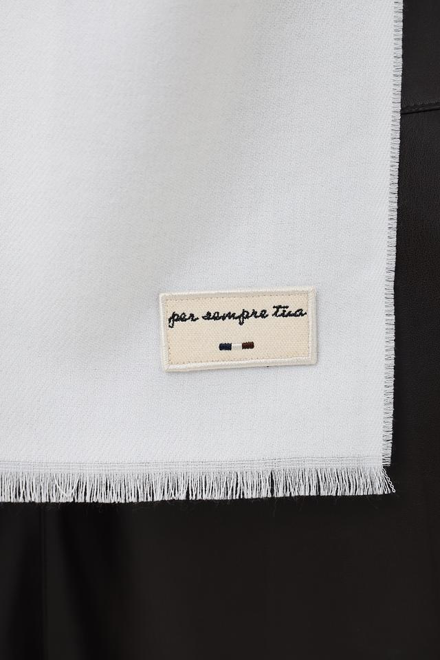 Отличительной особенностью данного шарфа является наличие бахромы по краям, придающей ему более изысканный и завершенный вид. Логотип бренда, нанесенный на небольшую тканевую бирку, подчеркивает качество и стиль аксессуара.