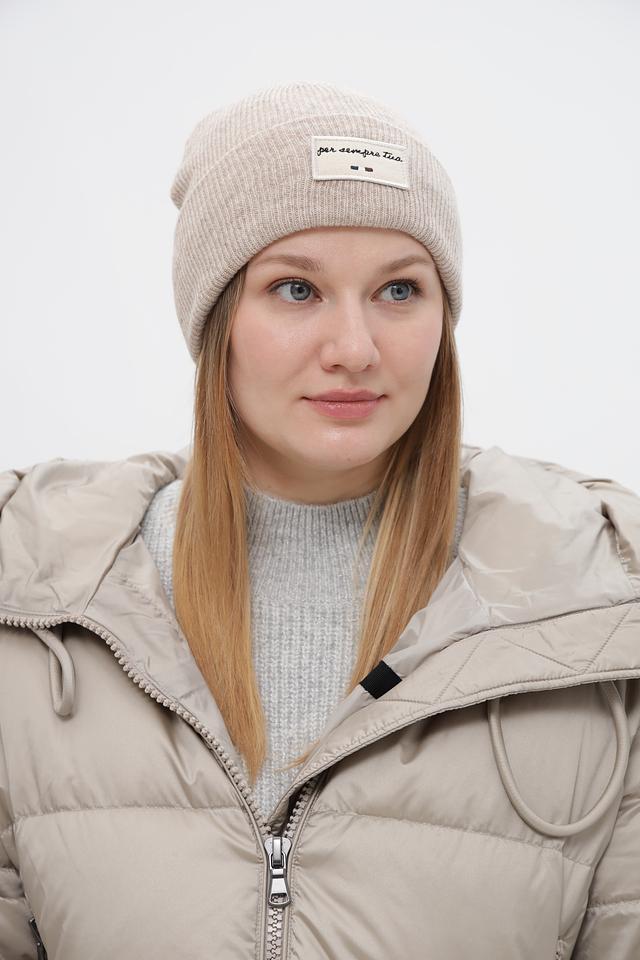 Модель имеет классическую форму и деликатную вязаную текстуру. Шапка украшена небольшим нашивкой с логотипом бренда. Универсальный дизайн шапки позволяет сочетать ее с различной верхней одеждой и создавать разнообразные образы.