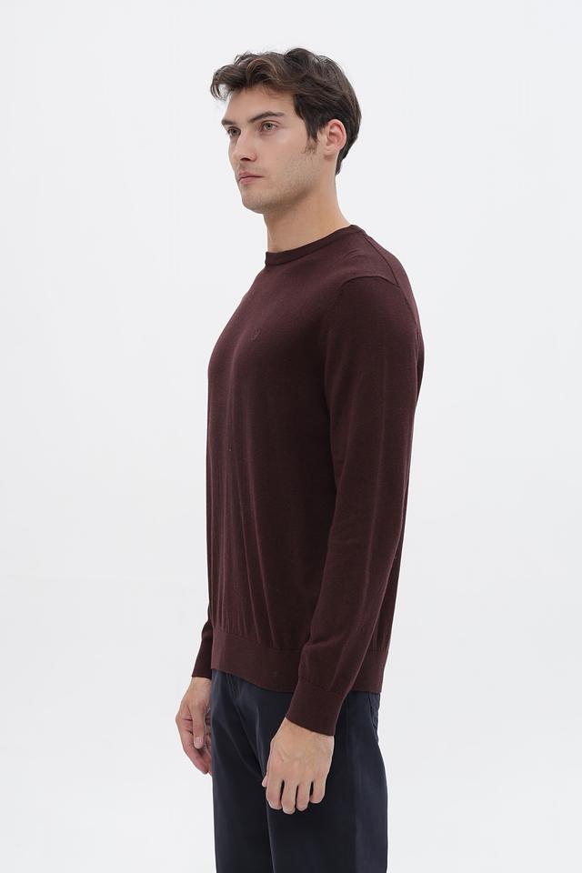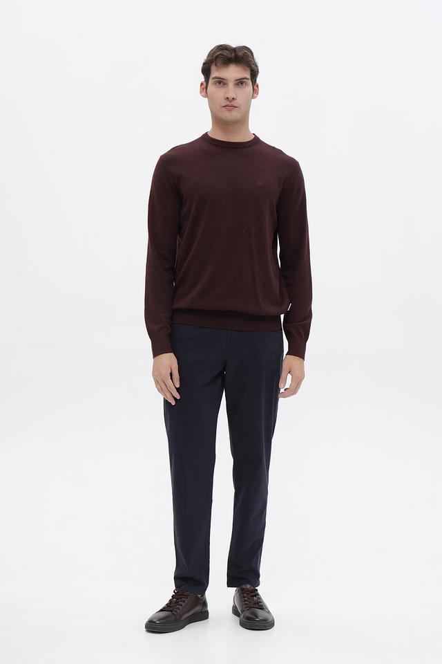 Джемпер имеет круглый вырез горловины и длинные рукава. На груди расположен небольшой логотип бренда. Текстура вязки однородная, без выраженных узоров. Прямой крой обеспечивает свободу движений и комфортную посадку по фигуре.