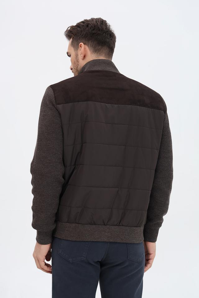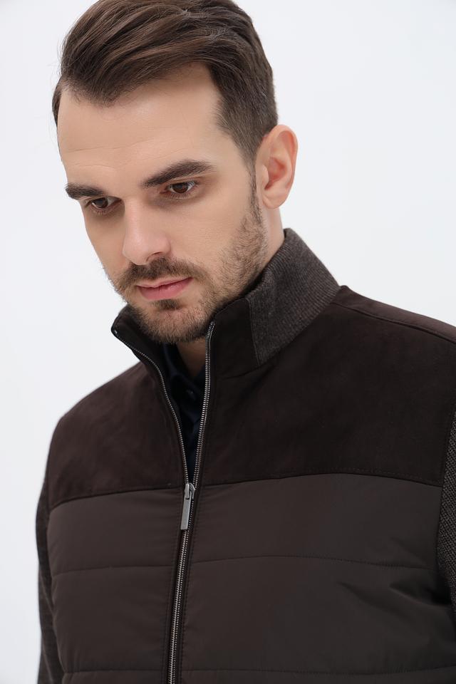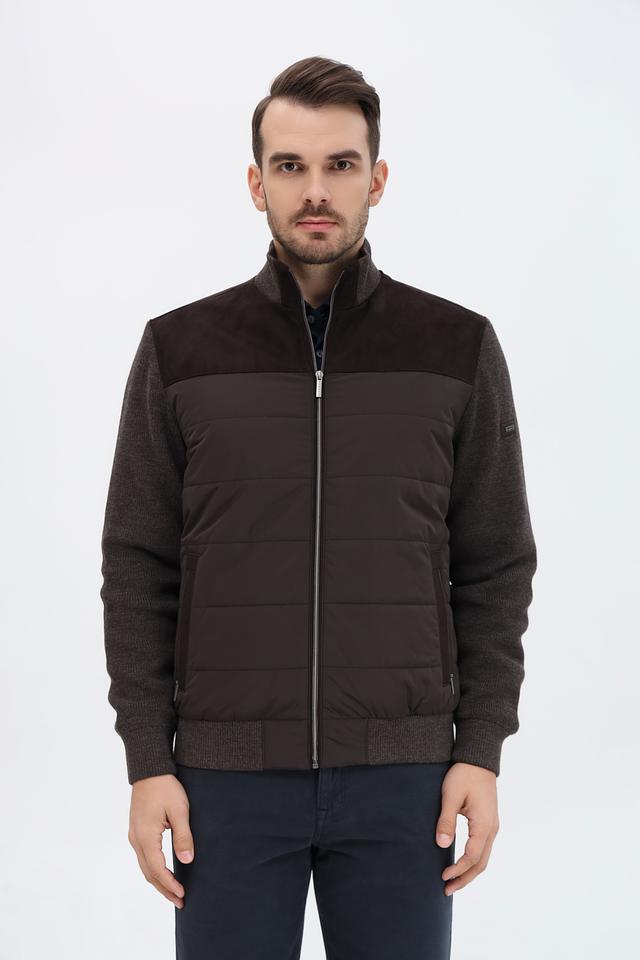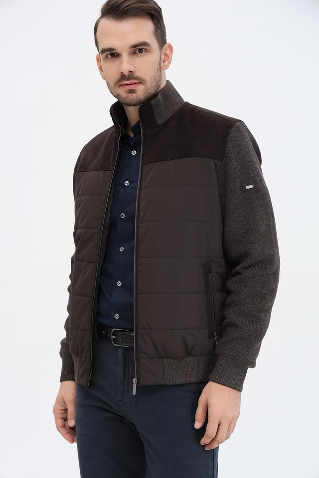 Мужская куртка Bugatti коричневого цвета с комбинированным дизайном. Выполнена из шерсти и полиакрила, отличается стильным сочетанием стеганого и вязаного полотна. Состав: полиакрил 70%, шерсть 30%