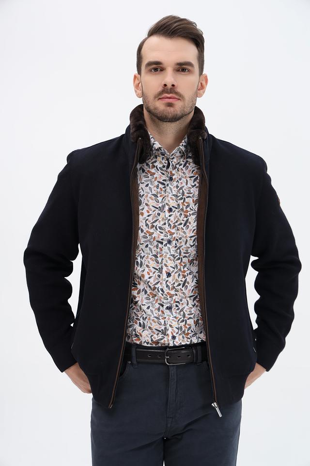 Мужская куртка Bugatti тёмно-синего цвета с отделкой из искусственного меха на воротнике. Модель выполнена из шерсти и полиакрила, обеспечивающих комфорт и тепло. Идеальный выбор для прохладной погоды. Состав: полиакрил 70%, шерсть 30%