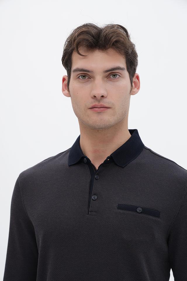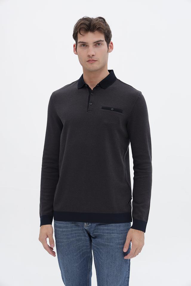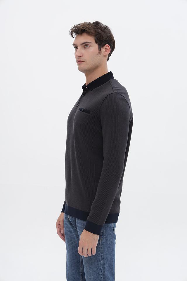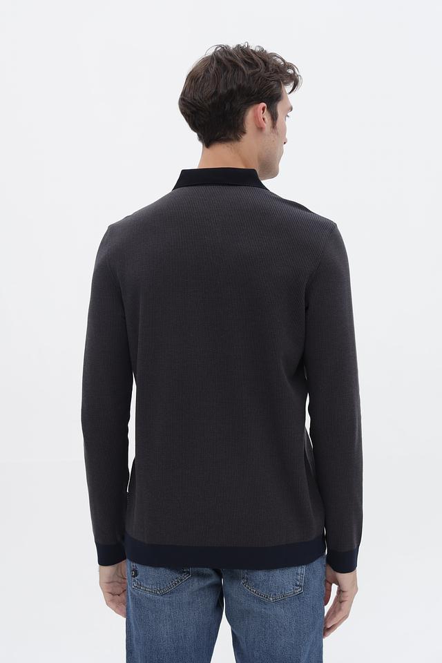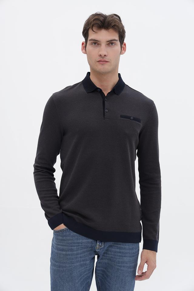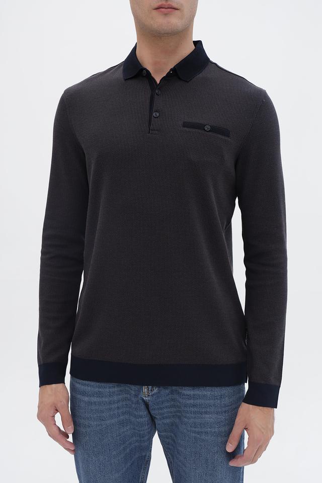 Мужской джемпер Bugatti графитового цвета с воротником-поло и длинными рукавами. Изготовлен из сочетания полиэстера и хлопка, обеспечивая комфорт и практичность. Отличается стильным дизайном и удобной посадкой. Состав: полиэстер 60%, хлопок 40%