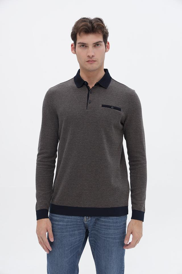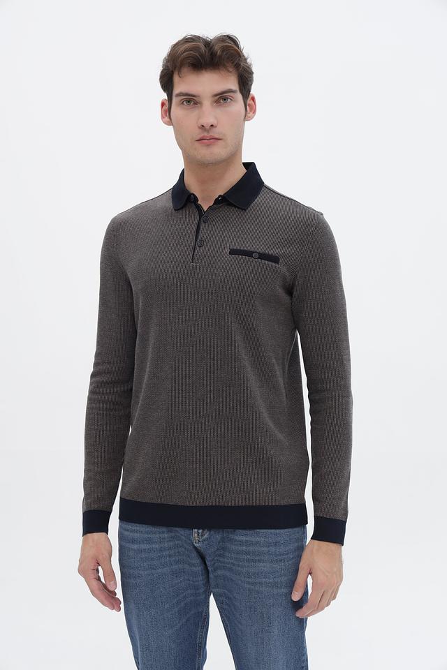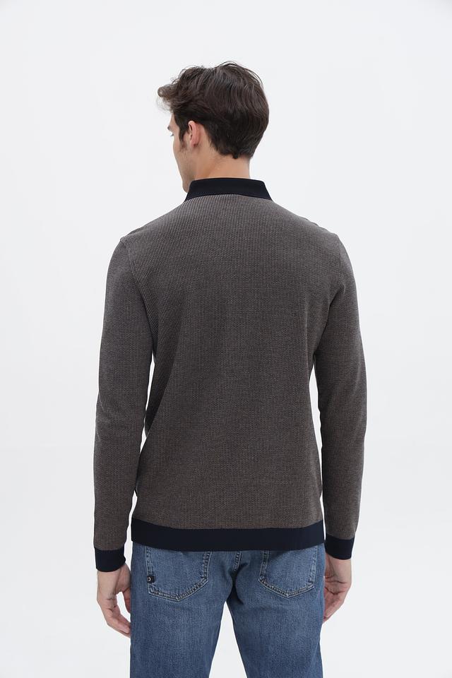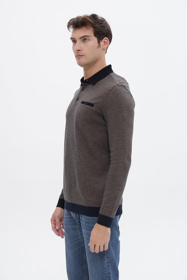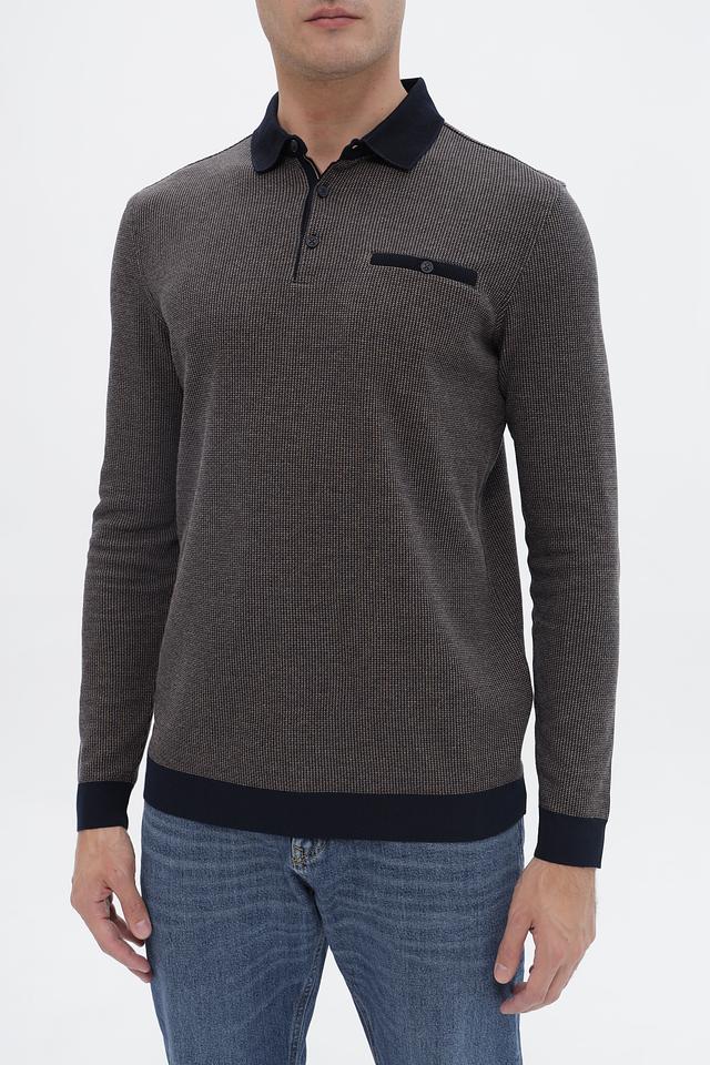 Мужской джемпер Bugatti серого цвета с воротником-поло и тёмно-синими манжетами и воротником. Изготовлен из сочетания полиэстера и хлопка, обеспечивающих комфорт и практичность. Состав: полиэстер 60%, хлопок 40%