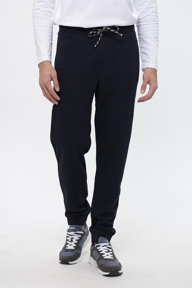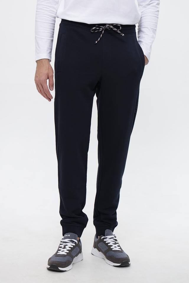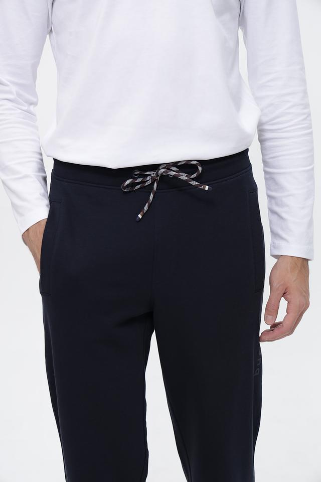Мужские спортивные брюки Bugatti темно-синего цвета, выполнены из хлопка с добавлением полиэстера. Модель с эластичным поясом и шнурком для регулировки, удобные для повседневной носки и активного отдыха. Состав: хлопок 87%, полиэстер 13%