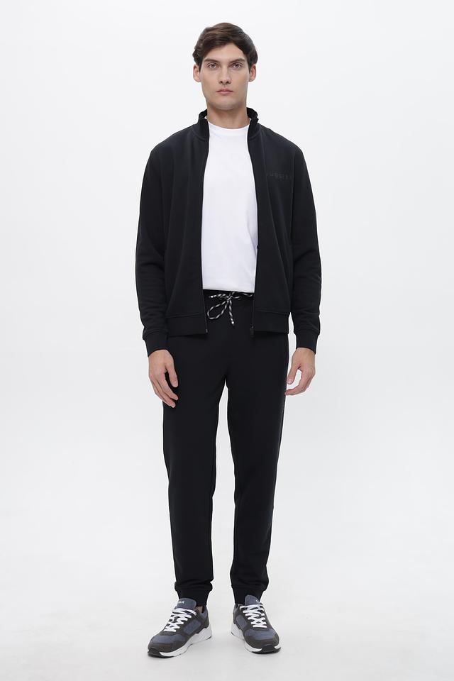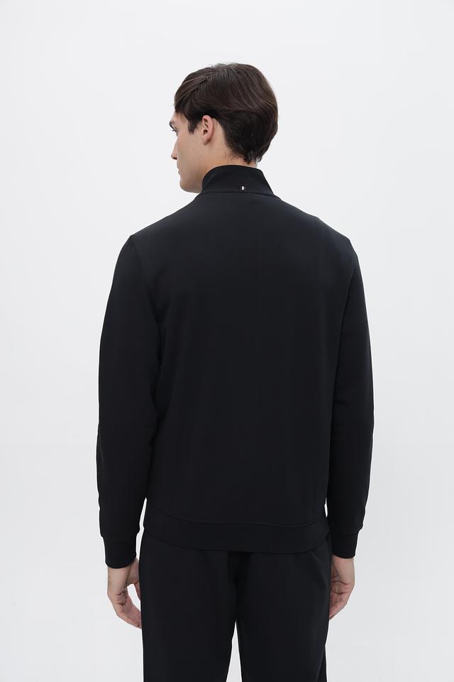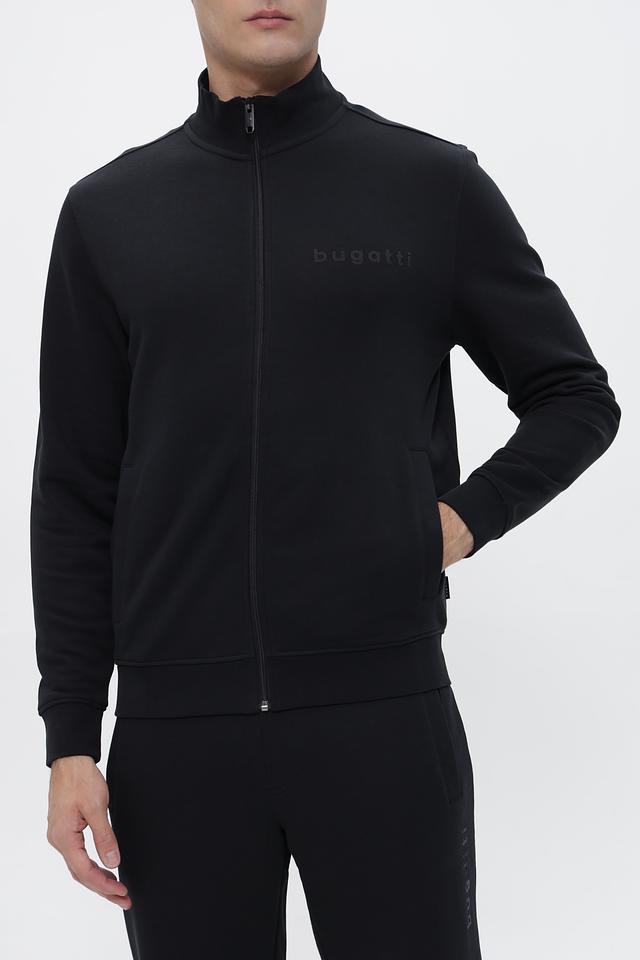 Мужской кардиган Bugatti классического кроя, выполнен в чёрном цвете. Модель застёгивается на молнию, имеет воротник-стойку и манжеты на рукавах. Логотип бренда Bugatti расположен на груди.