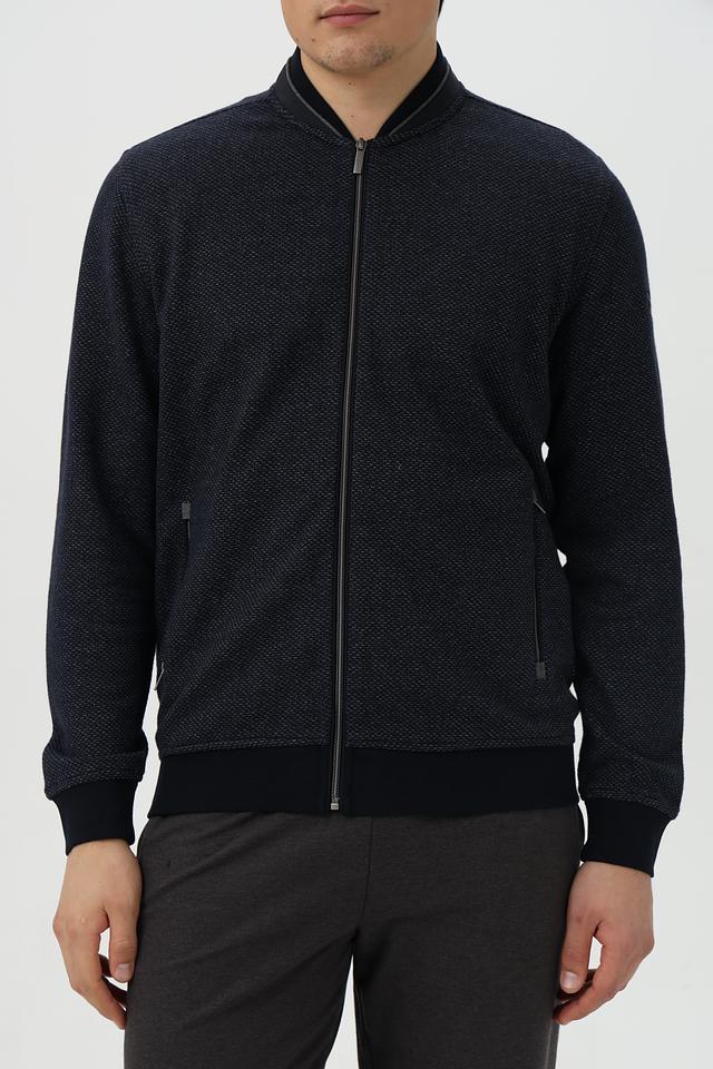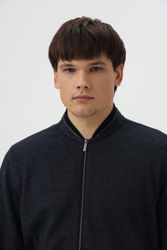 Мужской кардиган Bugatti тёмно-синего цвета с оригинальной текстурой. Изготовлен из хлопка с добавлением полиэстера и эластана для комфорта и износостойкости. Состав: хлопок 87%, полиэстер 10%, эластан 3%