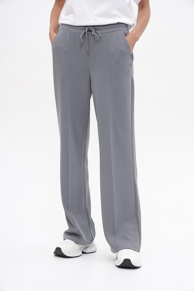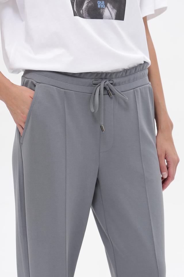 Брюки имеют свободный крой, обеспечивающий свободу движений, а пояс на кулиске позволяет регулировать посадку по фигуре. Классический серый цвет легко сочетается с различными элементами гардероба.