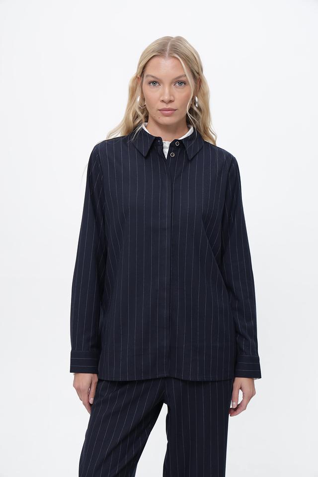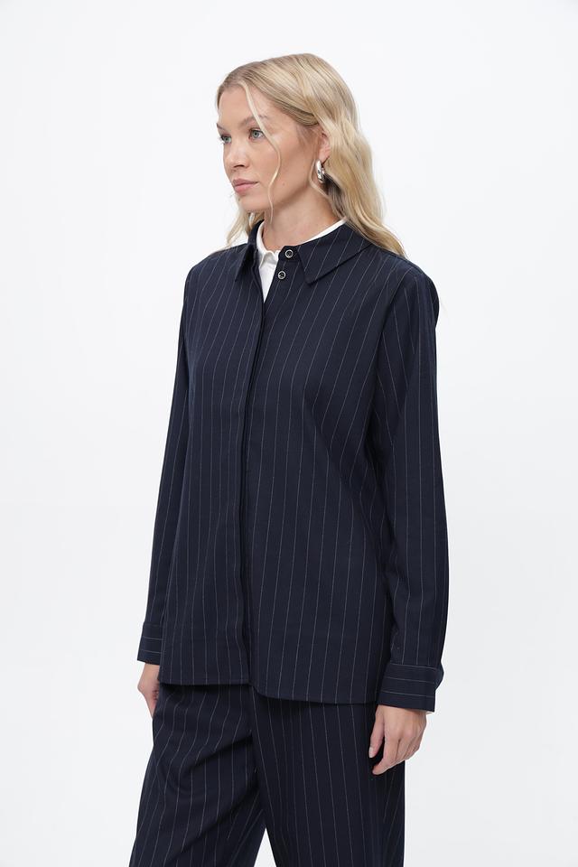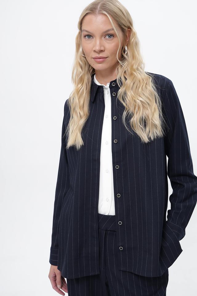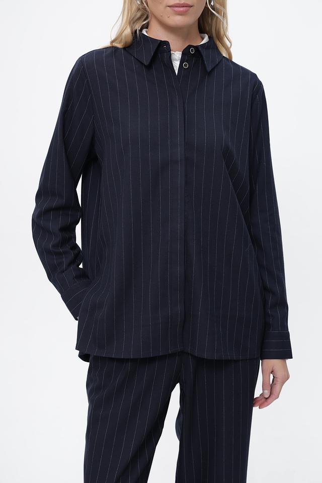 Женская рубашка Bugatti темно-синего цвета с вертикальной полоской – стильное и универсальное решение для создания элегантного образа. Классический крой и длинные рукава делают эту рубашку подходящей для различных случаев. Состав: полиэстер 63%, вискоза 34%, эластан 3%