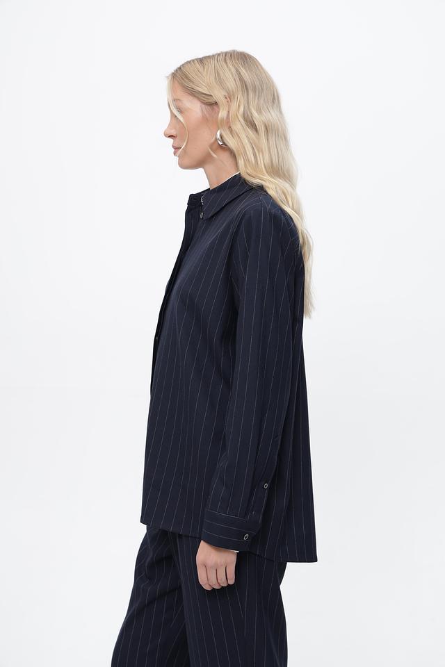 Состав ткани: 63% полиэстер, 34% вискоза, 3% эластан. Это сочетание материалов обеспечивает рубашке приятные тактильные ощущения, легкость в уходе и хорошую износостойкость.