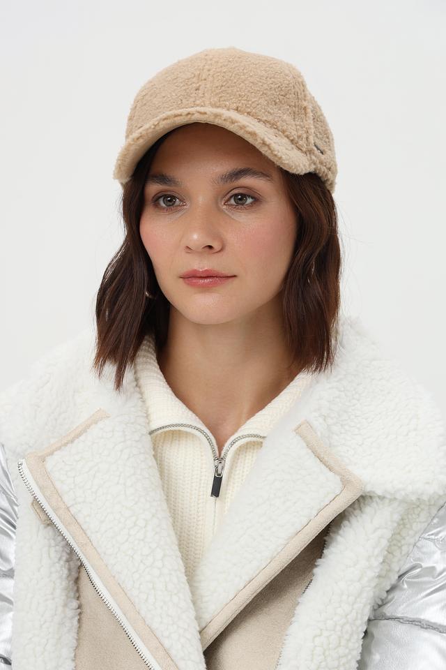 Бейсболка имеет бежевый цвет и фактурную поверхность, напоминающую шерсть. Классический крой и небольшой козырек делают ее универсальной для различных стилей одежды.