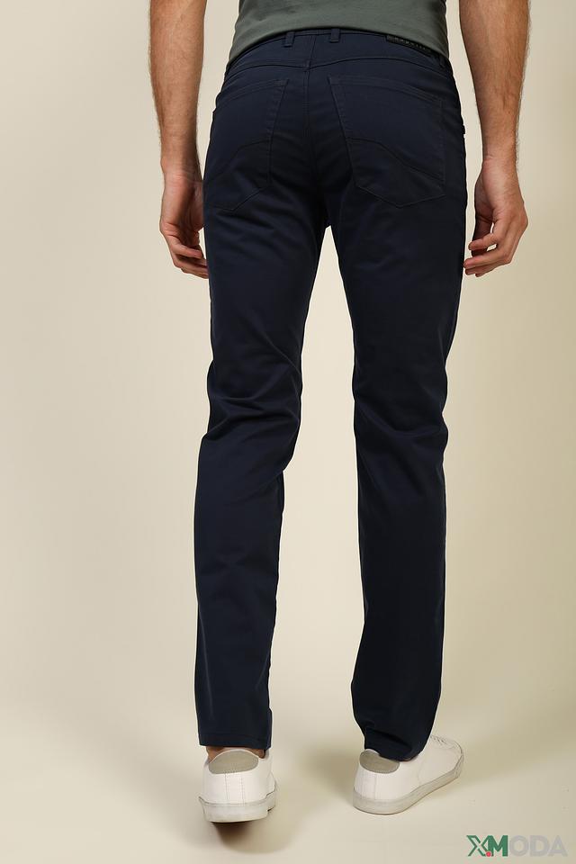 Брюки выполнены из высококачественного материала, состоящего из 89% хлопка, 7% эластомультиэстера и 4% эластана. Такое сочетание обеспечивает мягкость, эластичность и долговечность изделия. Цвет брюк – насыщенный темно-синий, что делает их универсальными и подходящими для различных образов.