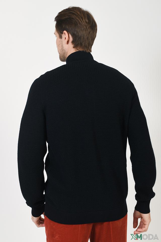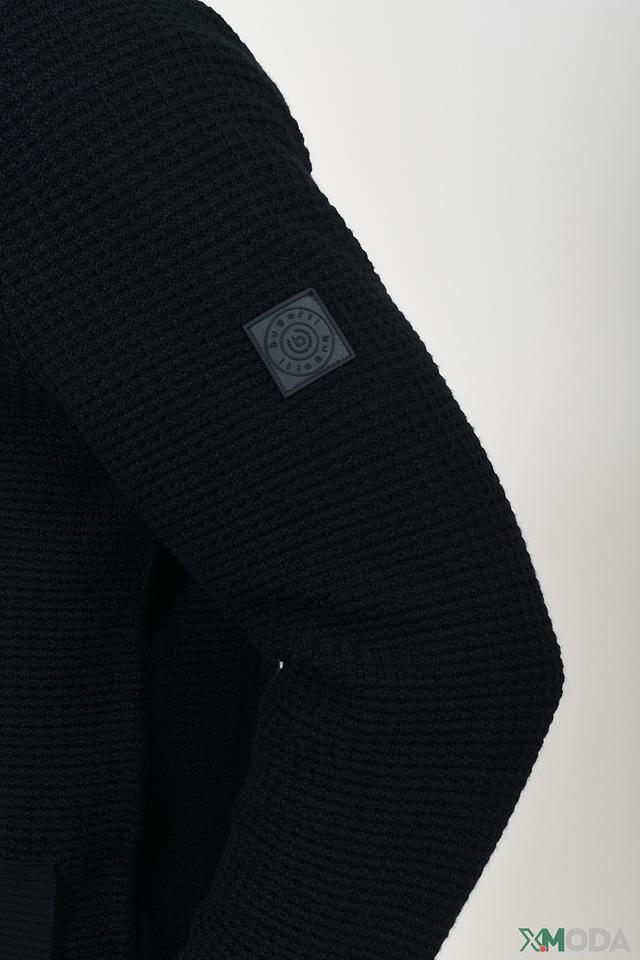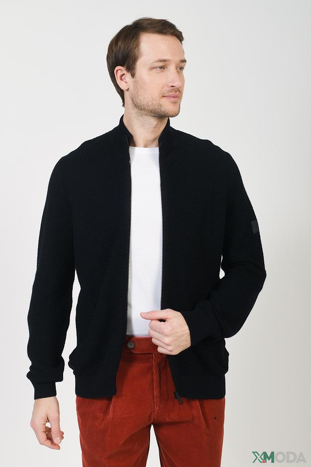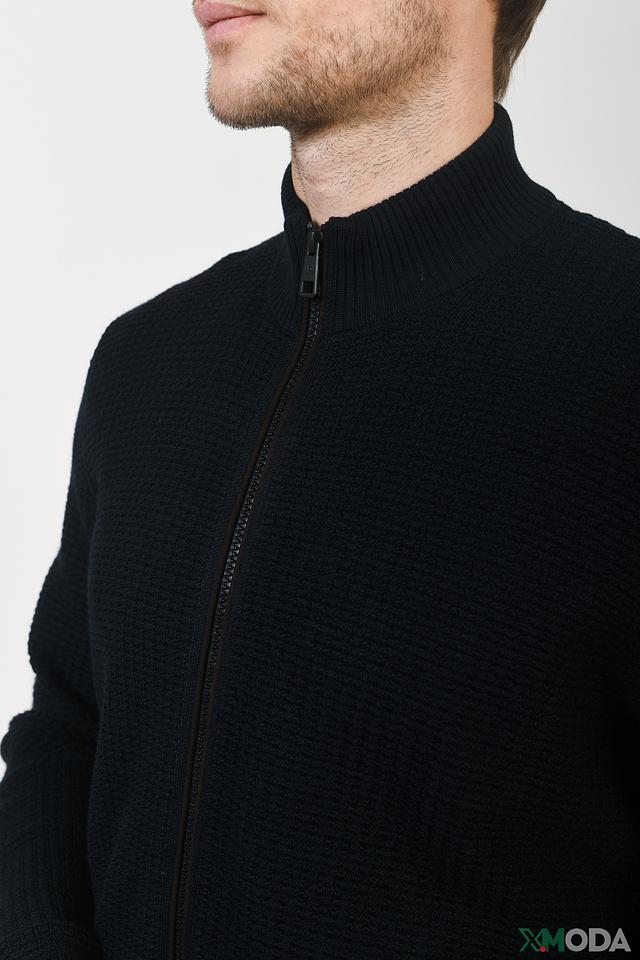 Мужской кардиган Bugatti чёрного цвета с застёжкой на молнии. Модель выполнена из текстурного трикотажа с небольшим воротником-стойкой и имеет функциональные карманы. Идеальный выбор для создания стильного и комфортного образа. Состав: хлопок 50%, полиакрил 50%
