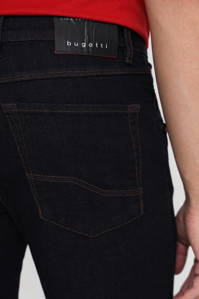 Мужские джинсы Bugatti тёмно-синего цвета в классическом slim fit крое. Модель выполнена из плотного хлопка с добавлением эластана для комфорта и свободы движений. Идеальный выбор для создания стильного повседневного образа. Состав: хлопок 80%, эластомультиэстер 18%, эластан 2%