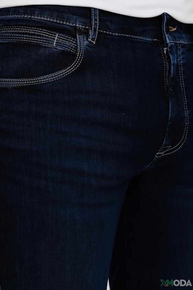 Мужские джинсы Bugatti тёмно-синего цвета в классическом slim fit крое. Модель выполнена из качественного хлопка с добавлением эластана для комфорта и свободы движений. Стильный и универсальный вариант для повседневного образа. Состав: хлопок 89%, эластомультиэстер 8%, эластан 3%