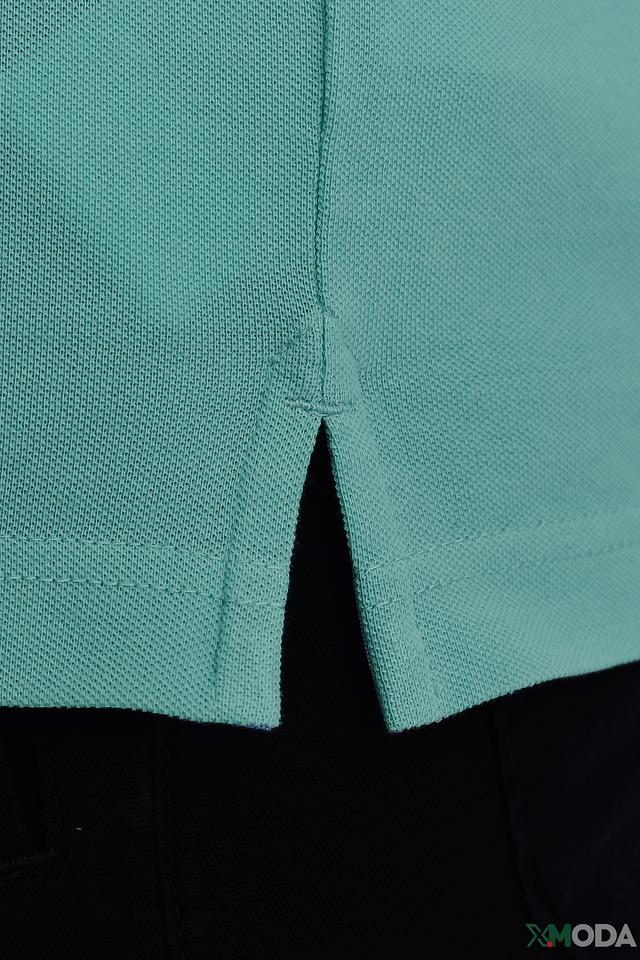 Поло имеет классический крой, короткие рукава и воротник на пуговицах. Отличительной особенностью модели является тонкая полоска по краю воротника и рукавов. На груди расположена небольшая эмблема бренда.