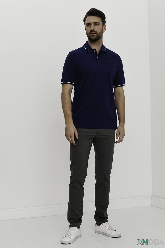Мужское поло от Bugatti выполнено в насыщенном синем цвете с контрастной белой отделкой по краю воротника и рукавов. Эта модель сочетает в себе элегантность и повседневный стиль.